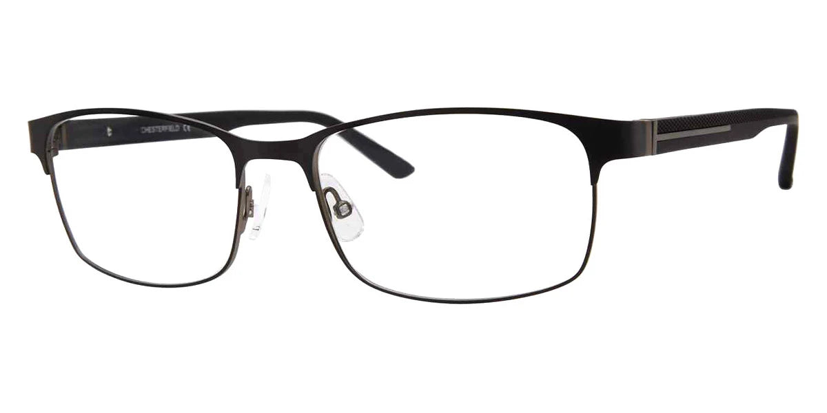 Matte Black (0003) Eyeglasses (CH 88XL 0003 58) by Chesterfield™. Size: 58-18-150, Shape: Square, Material: Plastic and Metal.