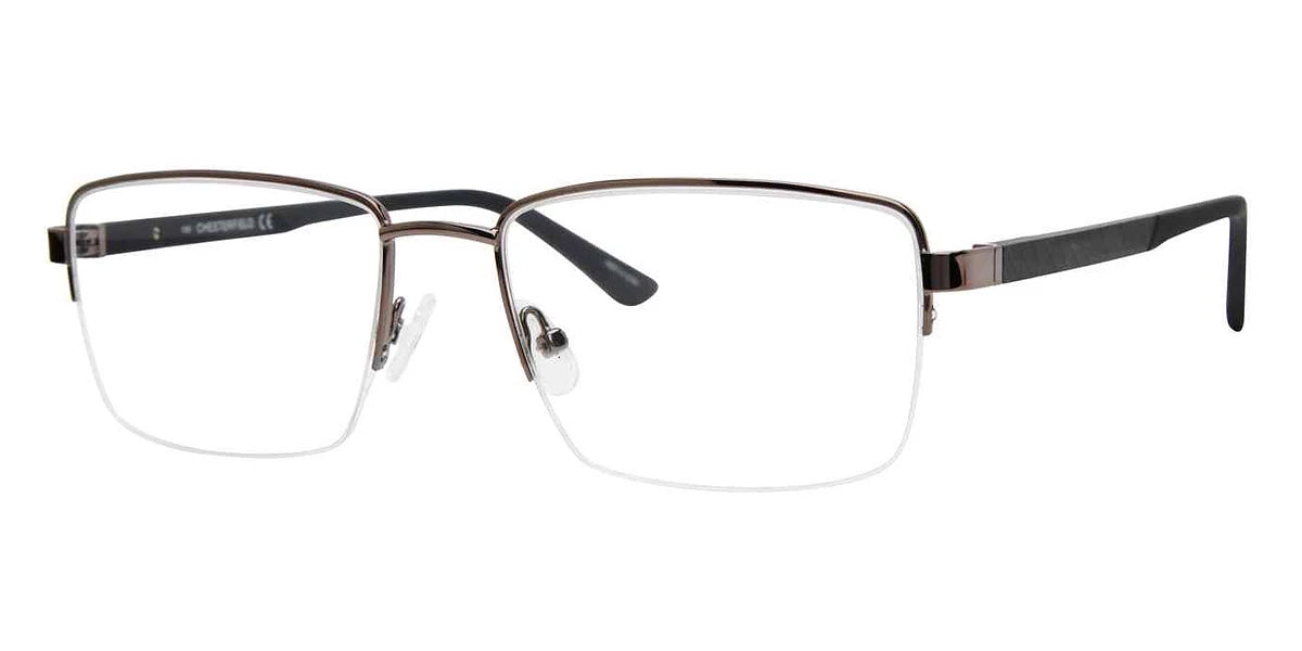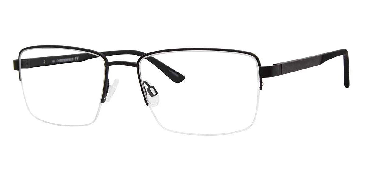 CH 105XL Eyeglasses by Chesterfield™. The rectangle shape design feature a semi rimless stainless steel and carbon fiber frame. This model is available in two different color combinations and sizes. Success is in the details. That's why it's so critical to choose the right accessories whether you're at an important meeting or having lunch with your friend. Men who are serious about their look and style choose Chesterfield eyeglasses that feature sleek and masculine design without bringing too much attention.