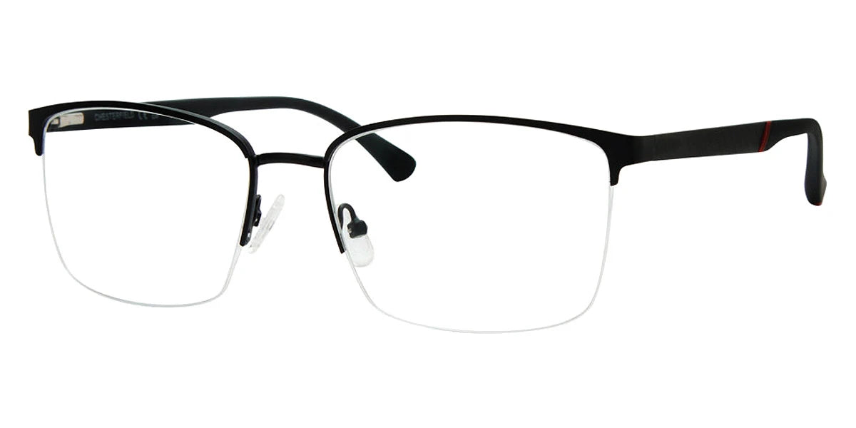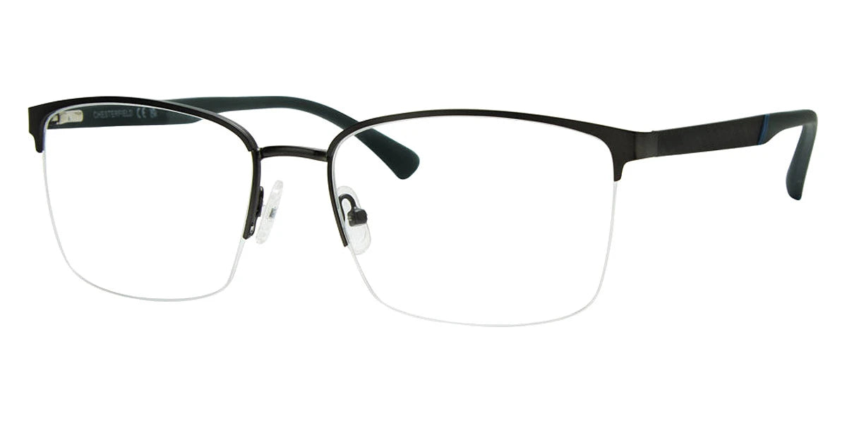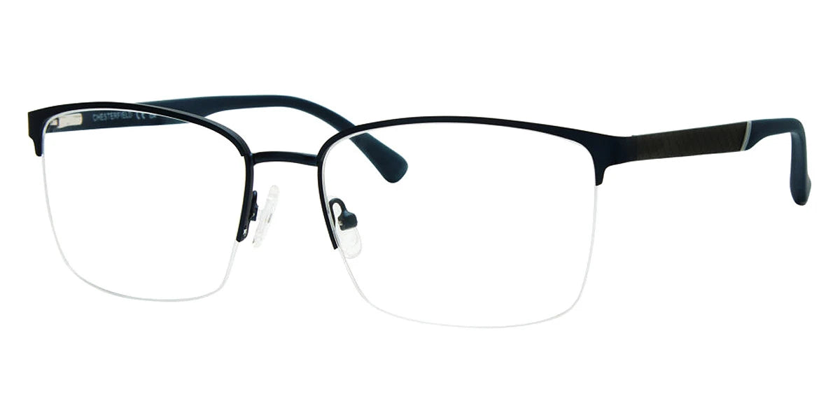 CH 118XL Eyeglasses by Chesterfield™. The square shape design feature a semi rimless stainless steel and carbon fiber frame. This model is available in three different color combinations and sizes. Success is in the details. That's why it's so critical to choose the right accessories whether you're at an important meeting or having lunch with your friend. Men who are serious about their look and style choose Chesterfield eyeglasses that feature sleek and masculine design without bringing too much attention.