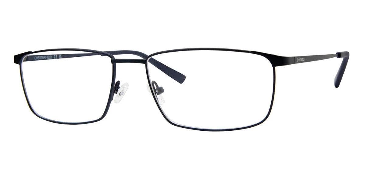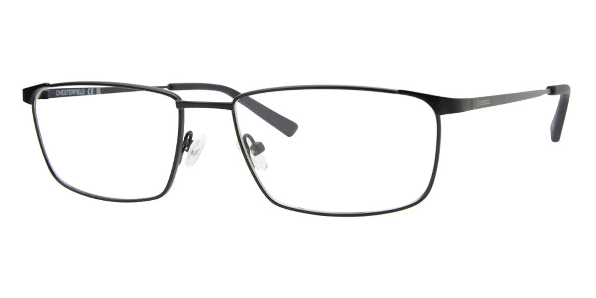 Matte Black (0003) Eyeglasses (CH 123XL 0003 56) by Chesterfield™. Size: 56-17-150, Shape: Rectangle, Material: Memory Metal.