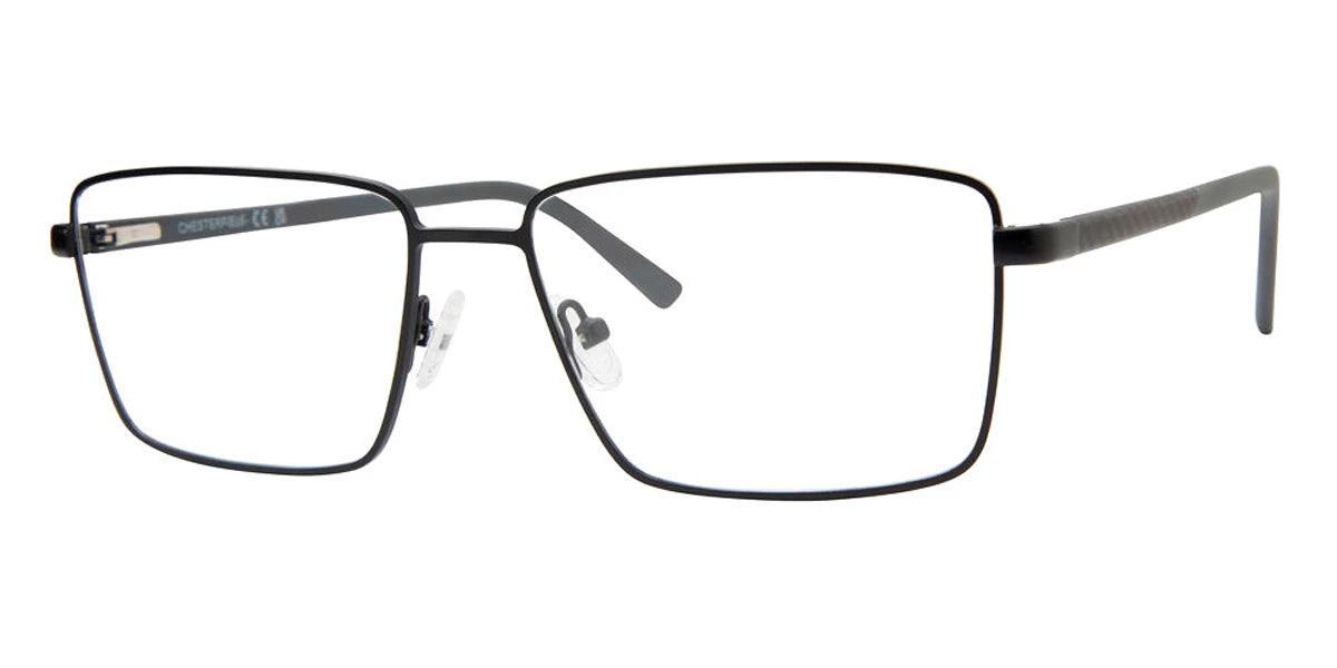 CH 124XL Eyeglasses by Chesterfield™. The rectangle shape design feature a full rim stainless steel and carbon fiber frame. This model is available in three different color combinations and sizes. Success is in the details. That's why it's so critical to choose the right accessories whether you're at an important meeting or having lunch with your friend. Men who are serious about their look and style choose Chesterfield eyeglasses that feature sleek and masculine design without bringing too much attention.
