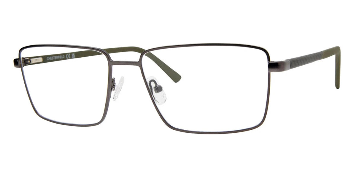 Matte Gray (0FRE) Eyeglasses (CH 124XL 0FRE 58) by Chesterfield™. Size: 58-17-150, Shape: Rectangle, Material: Stainless Steel and Carbon Fiber.