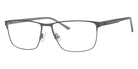 Brushed Gray (0JCA) Eyeglasses (CH 133XL 0JCA 57) by Chesterfield™. Size: 57-16-150, Shape: Rectangle, Material: Stainless Steel and Rubber.
