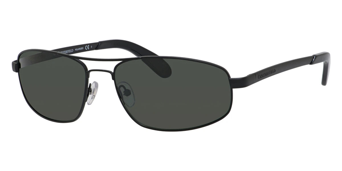 Matte Black (0C1KRE) Sunglasses with Green Polarized lenses (Top Dog/S 0C1KRE 60) by Chesterfield™. Size: 60-17-130, Shape: Rectangle, Material: Metal.