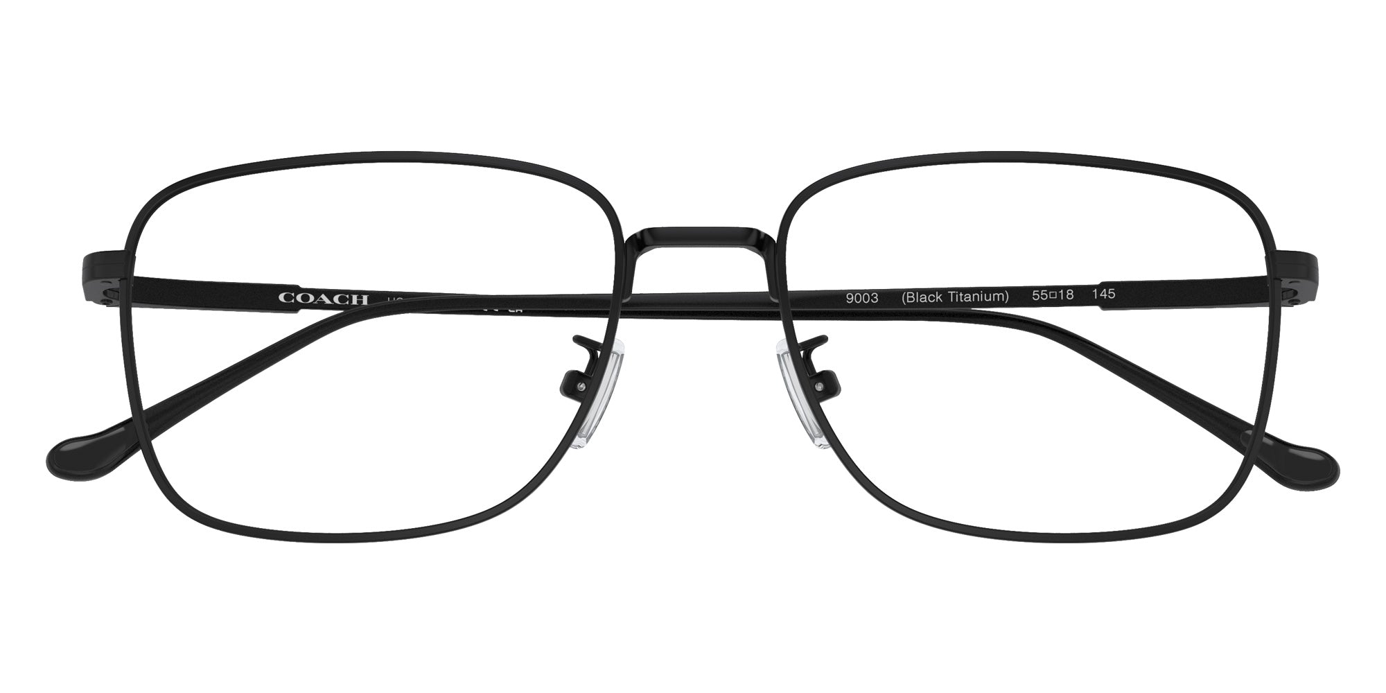 Black Titanium (9003) Eyeglasses (HC5150T 9003 55) by Coach. Size: 55-18-145, Shape: Square, Material: Titanium.