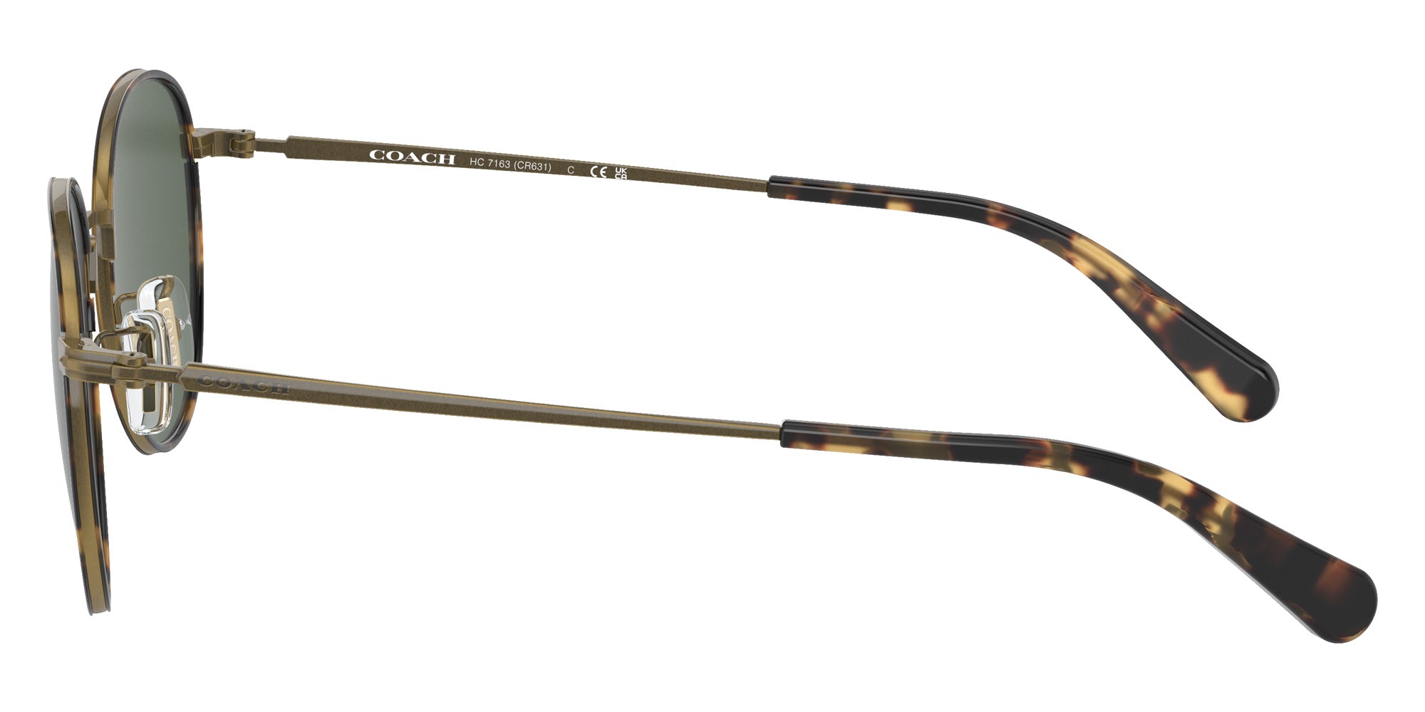 Light Gold/Dark Tortoise (90053G) Sunglasses (HC7163 CR631 90053G 52) by Coach. Size: 52-22-145, Shape: Wayfarer, Material: Metal.
