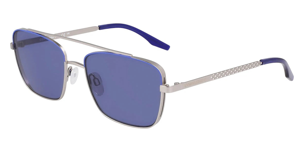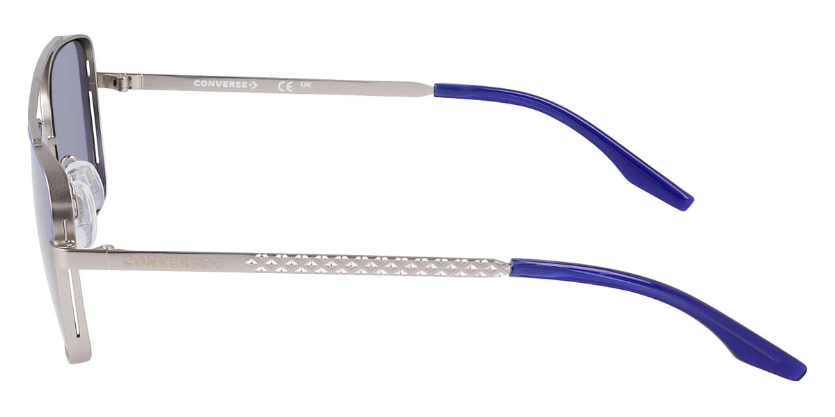 Satin Silver/Blue Flame (046) Sunglasses (CV106S FOXING II 046 56) by Converse™. Size: 56-17-145, Shape: Square, Material: Metal.