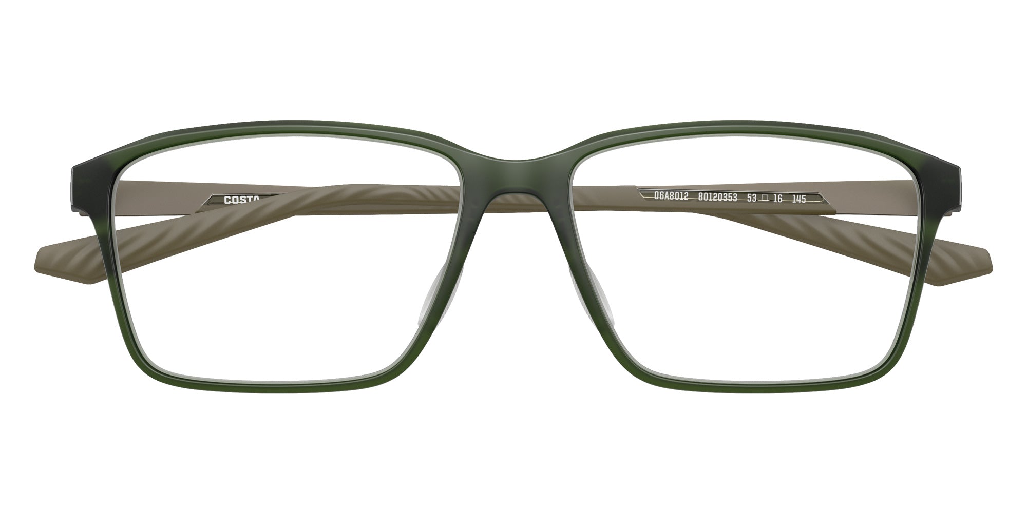 Algae Green (801203) Eyeglasses (6A8012 Pacific Rise 400 801203 53) by COSTA. Size: 53-16-145, Shape: Rectangle, Material: Injected and Metal.