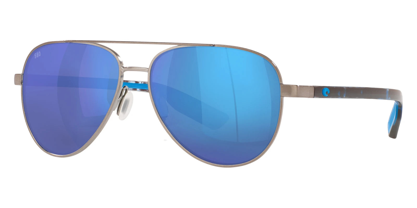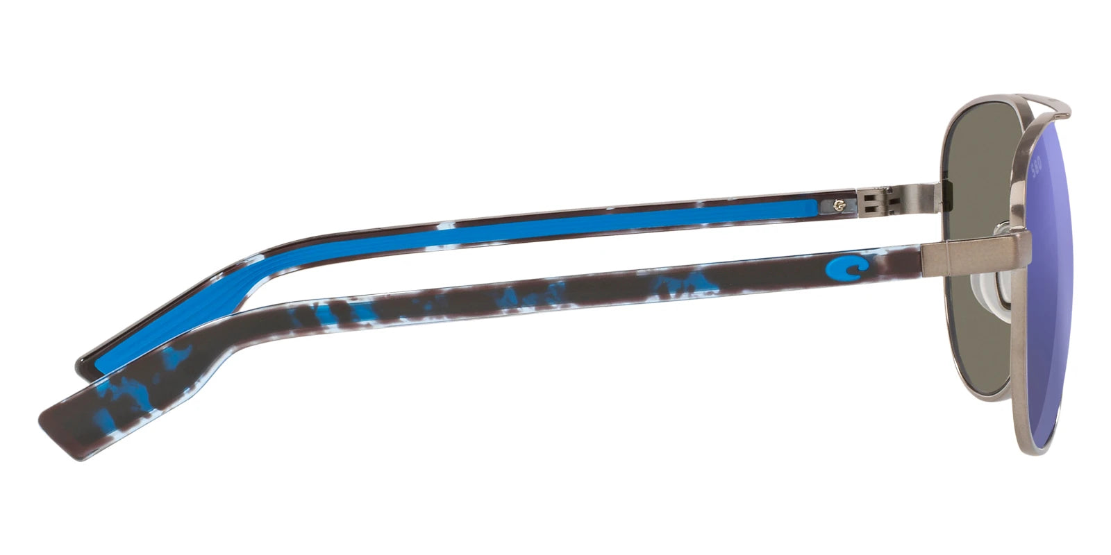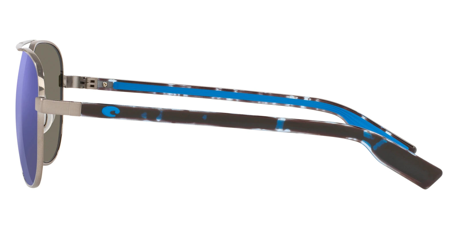 Brushed Gunmetal frame with Blue Mirrored Polarized lenses, COSTA part 6S4002 Peli 400211 57, has a Aviator Shape made out of Metal and Injected in size: 57-14-140. This model comes in Brushed Gunmetal frame. Color Code: 400211 Brushed Gunmetal