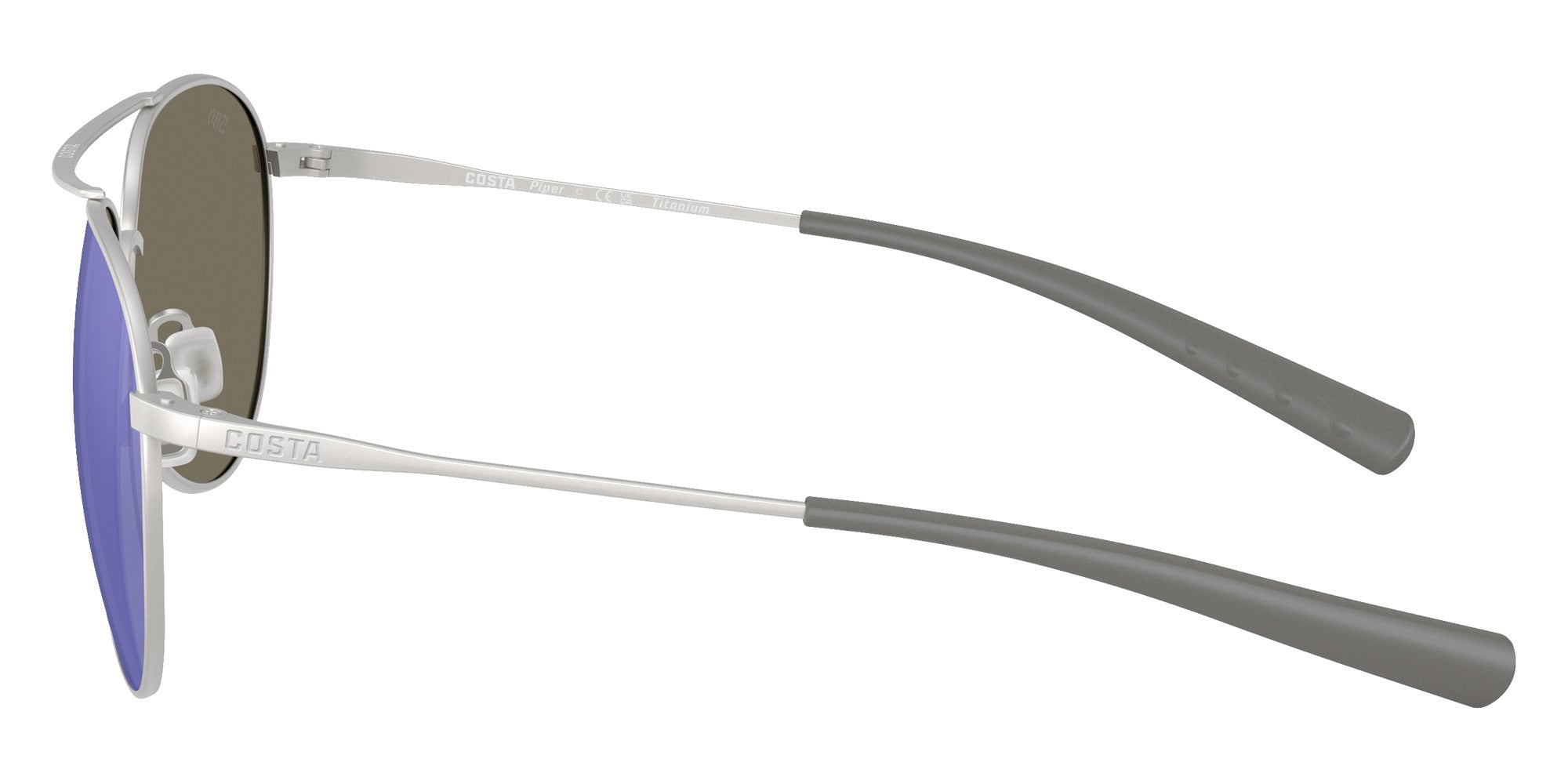 Satin Silver (600320) Sunglasses (6S6003 Piper 600320 58) by COSTA. Size: 58-14-135, Shape: Aviator, Material: Titanium and Metal.