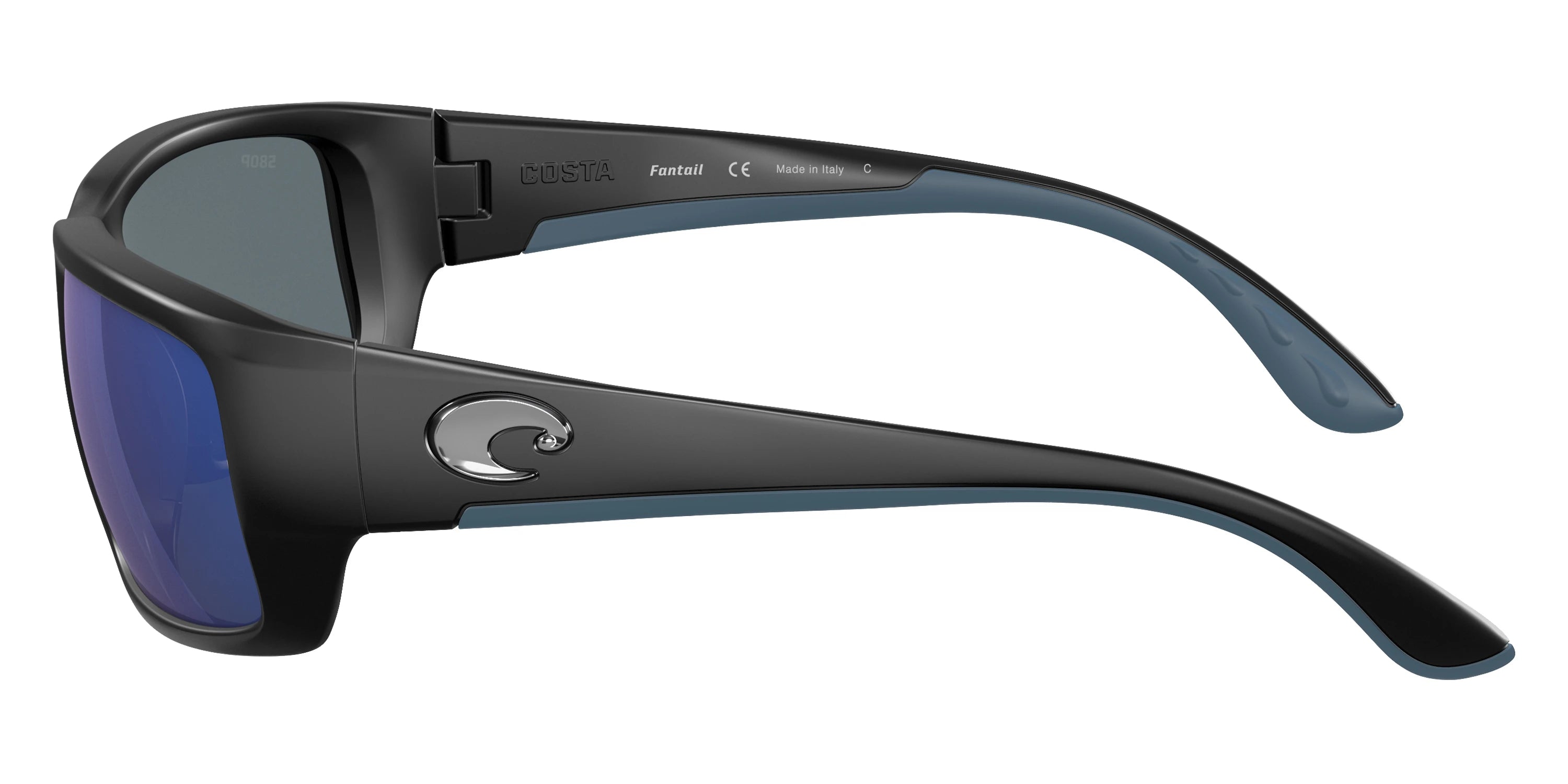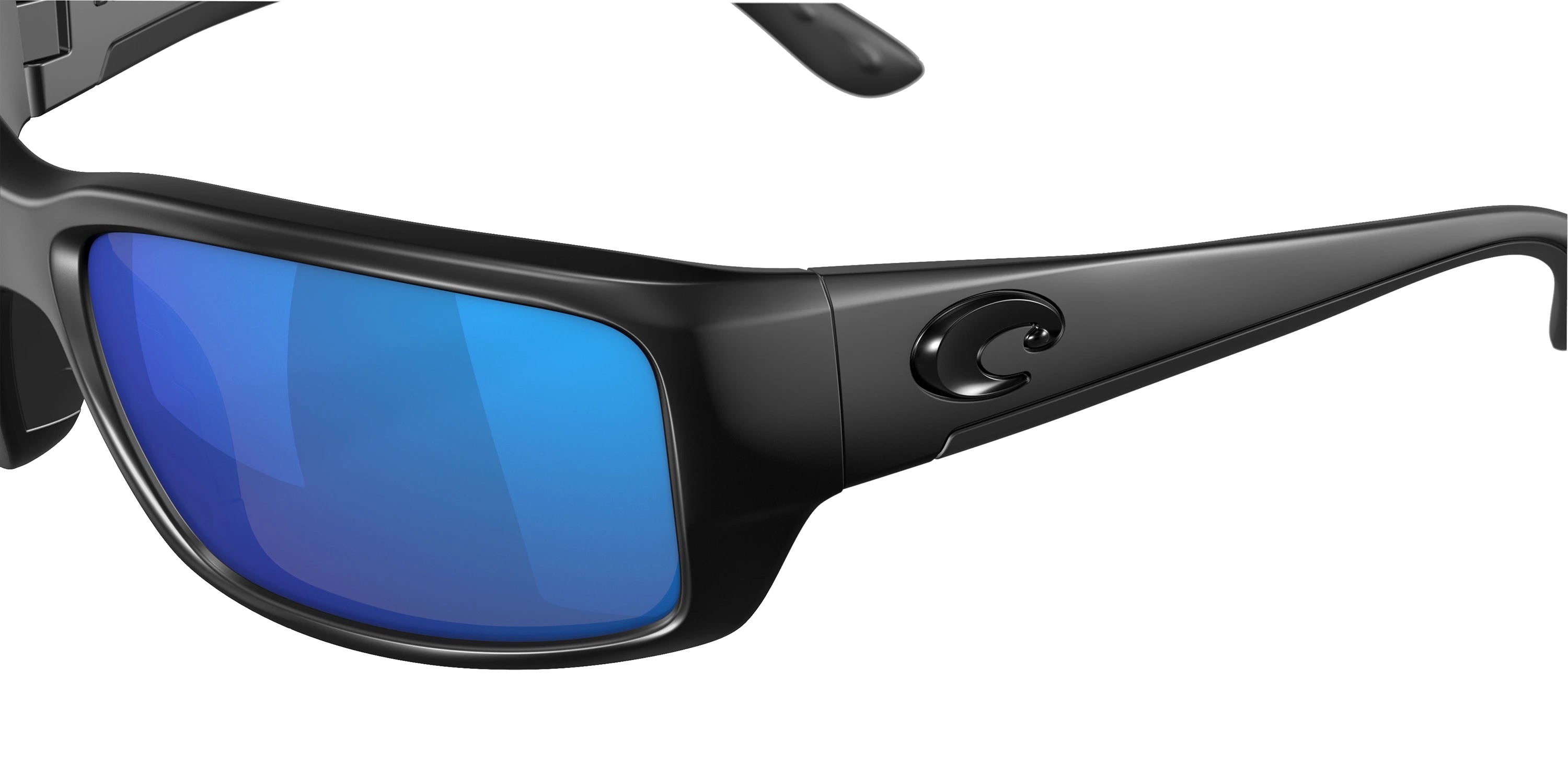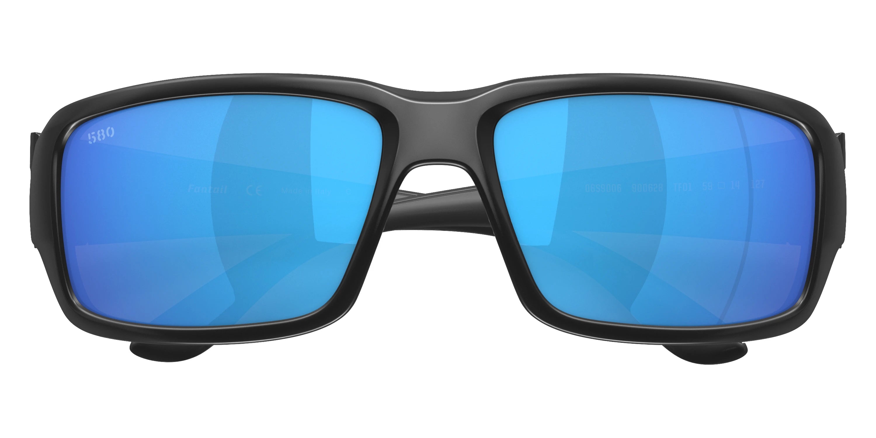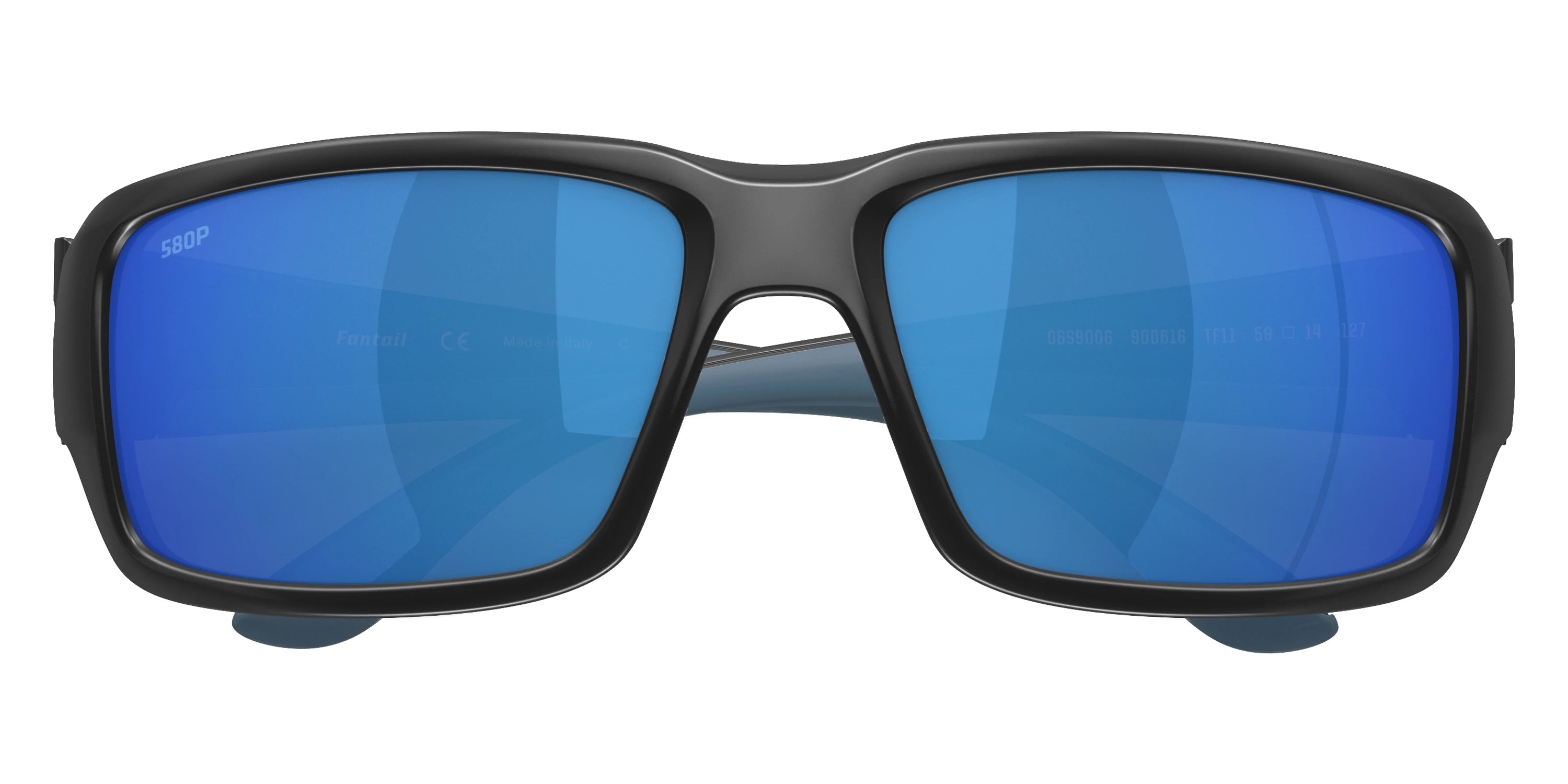 Blackout frame with Blue Mirrored Polarized lenses, COSTA part 6S9006 Fantail 900628 59, has a Rectangle Shape made out of Injected in size: 59-14-127. This model comes in Blackout frame. Color Code: 900628 Blackout