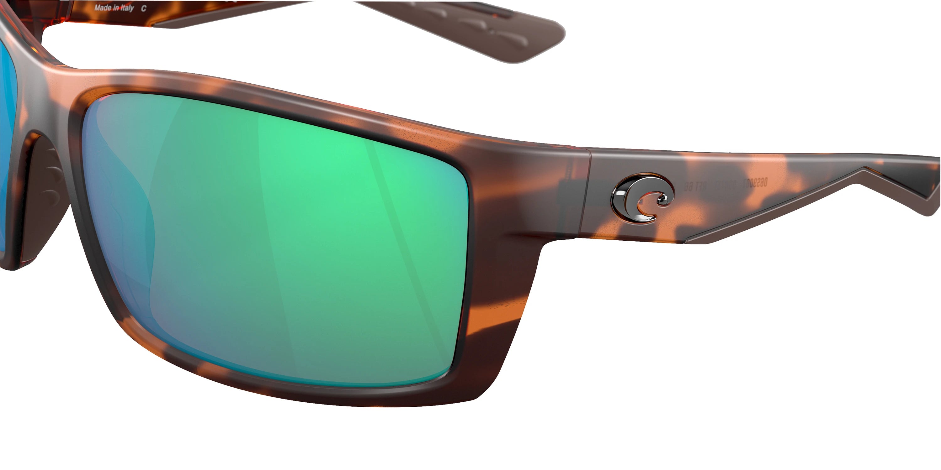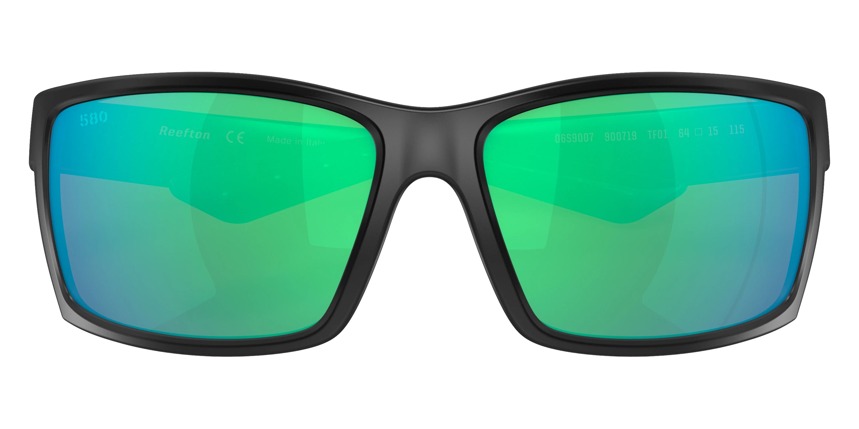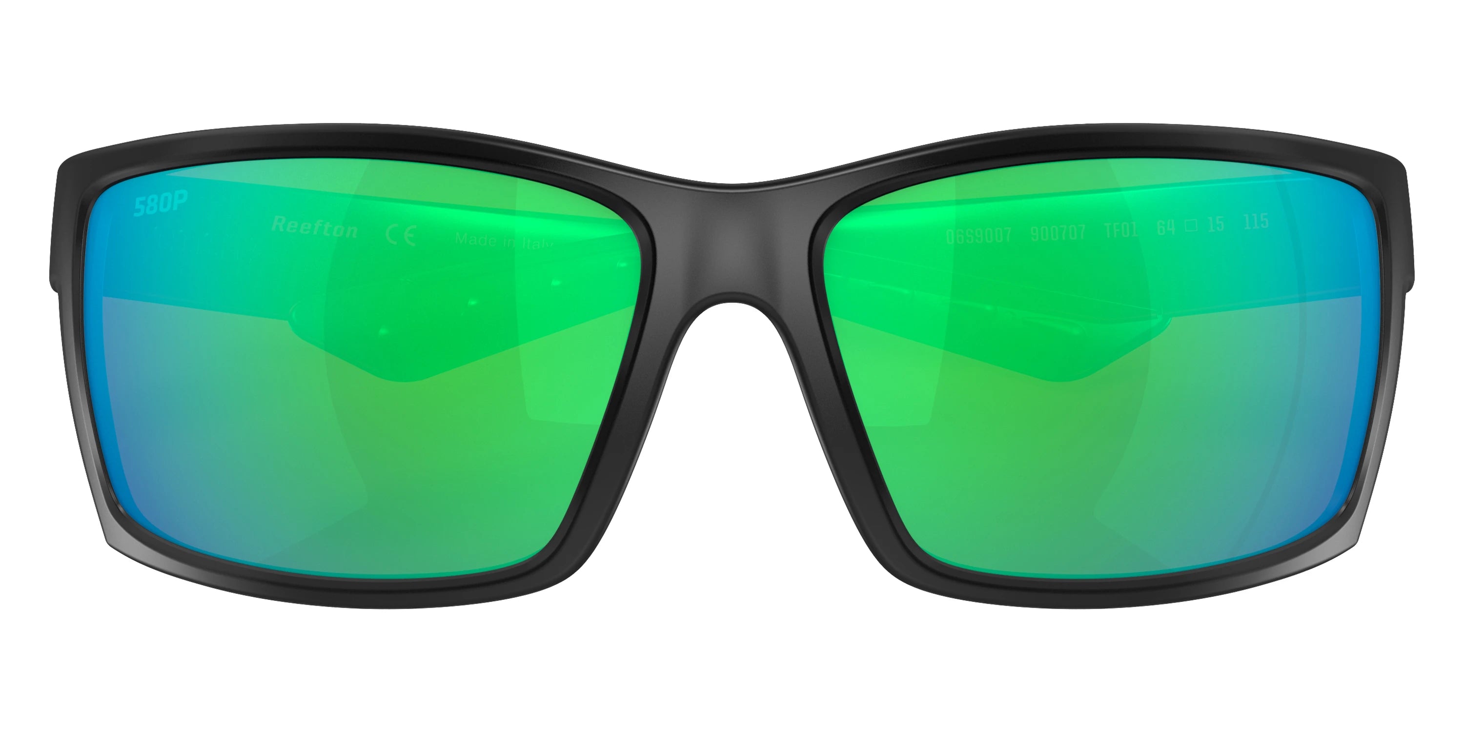 Blackout frame with Green Mirrored Polarized lenses, COSTA part 6S9007 Reefton 900707 64, has a Rectangle Shape made out of Injected in size: 64-15-115. This model comes in Blackout frame. Color Code: 900707 Blackout