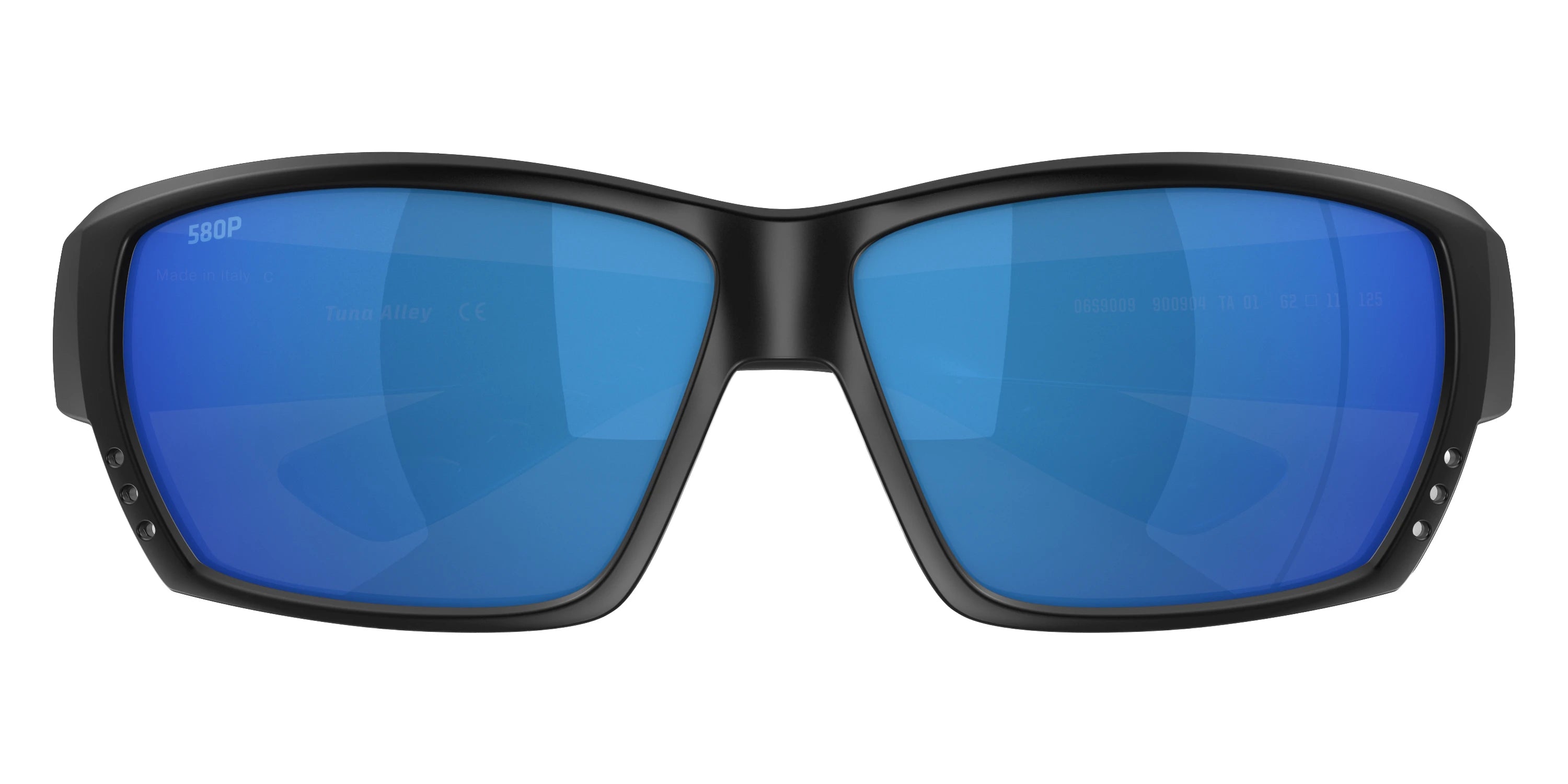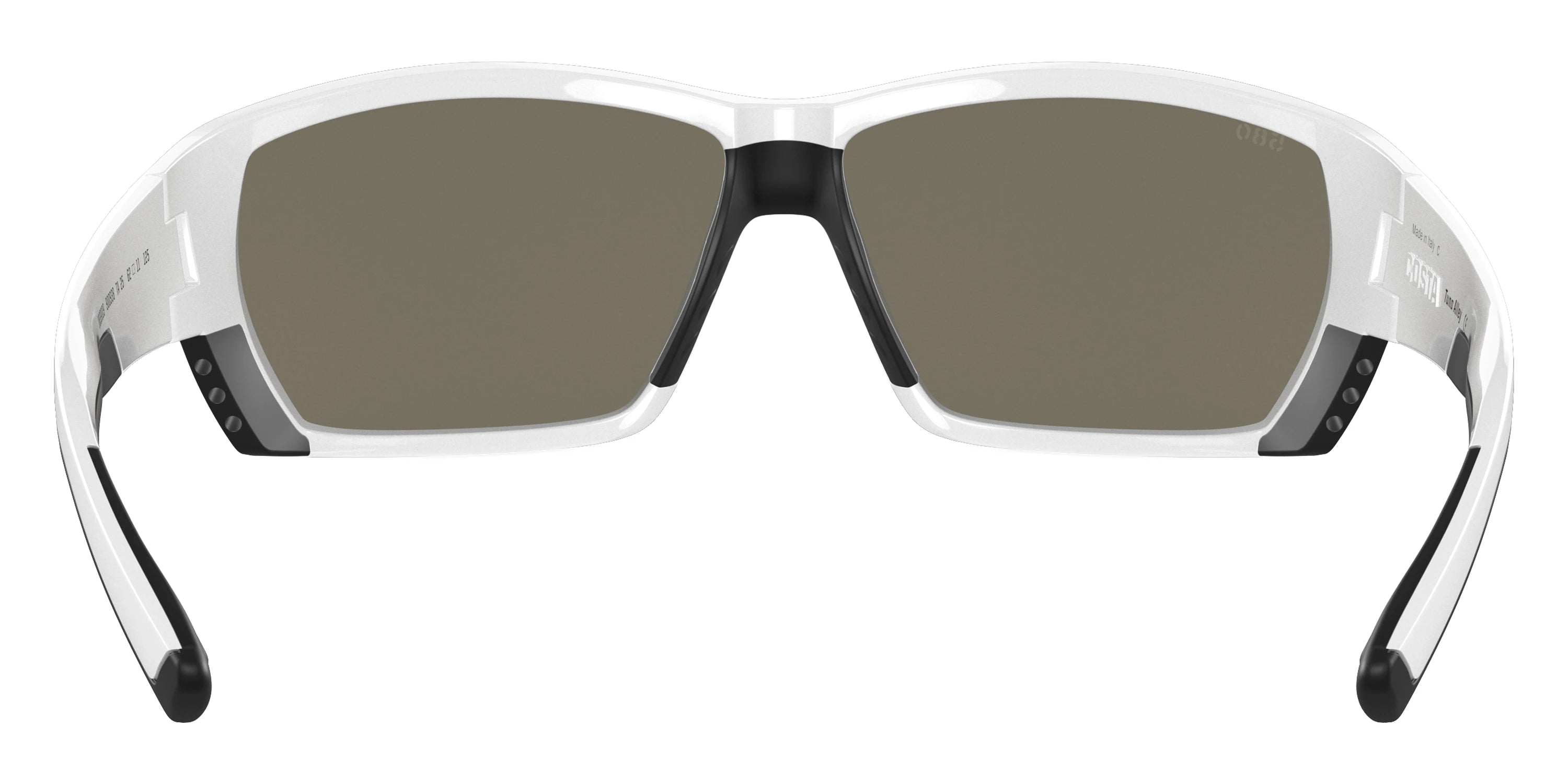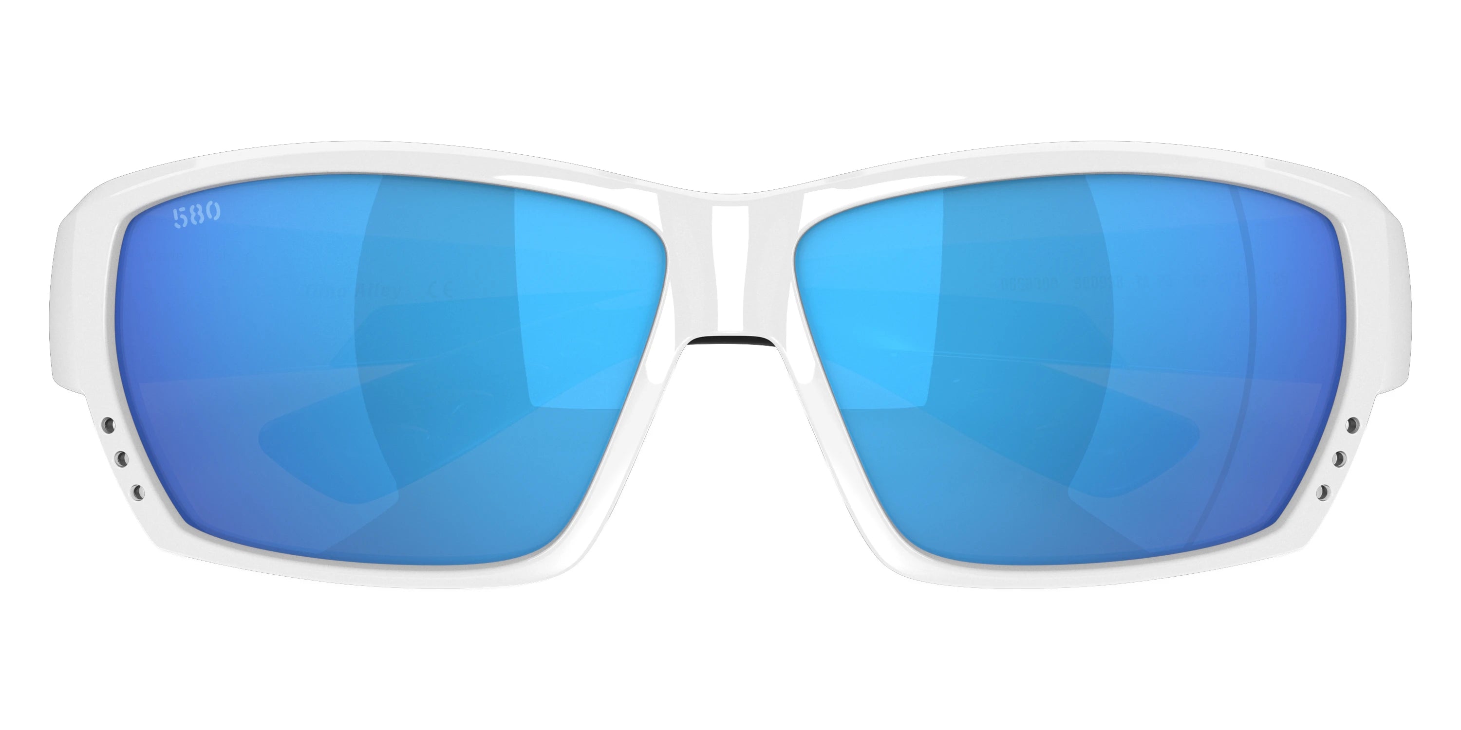 White frame with Blue Mirrored Polarized lenses, COSTA part 6S9009 Tuna Alley 900938 62, has a Rectangle Shape made out of Injected in size: 62-11-125. This model comes in White frame. Color Code: 900938 White