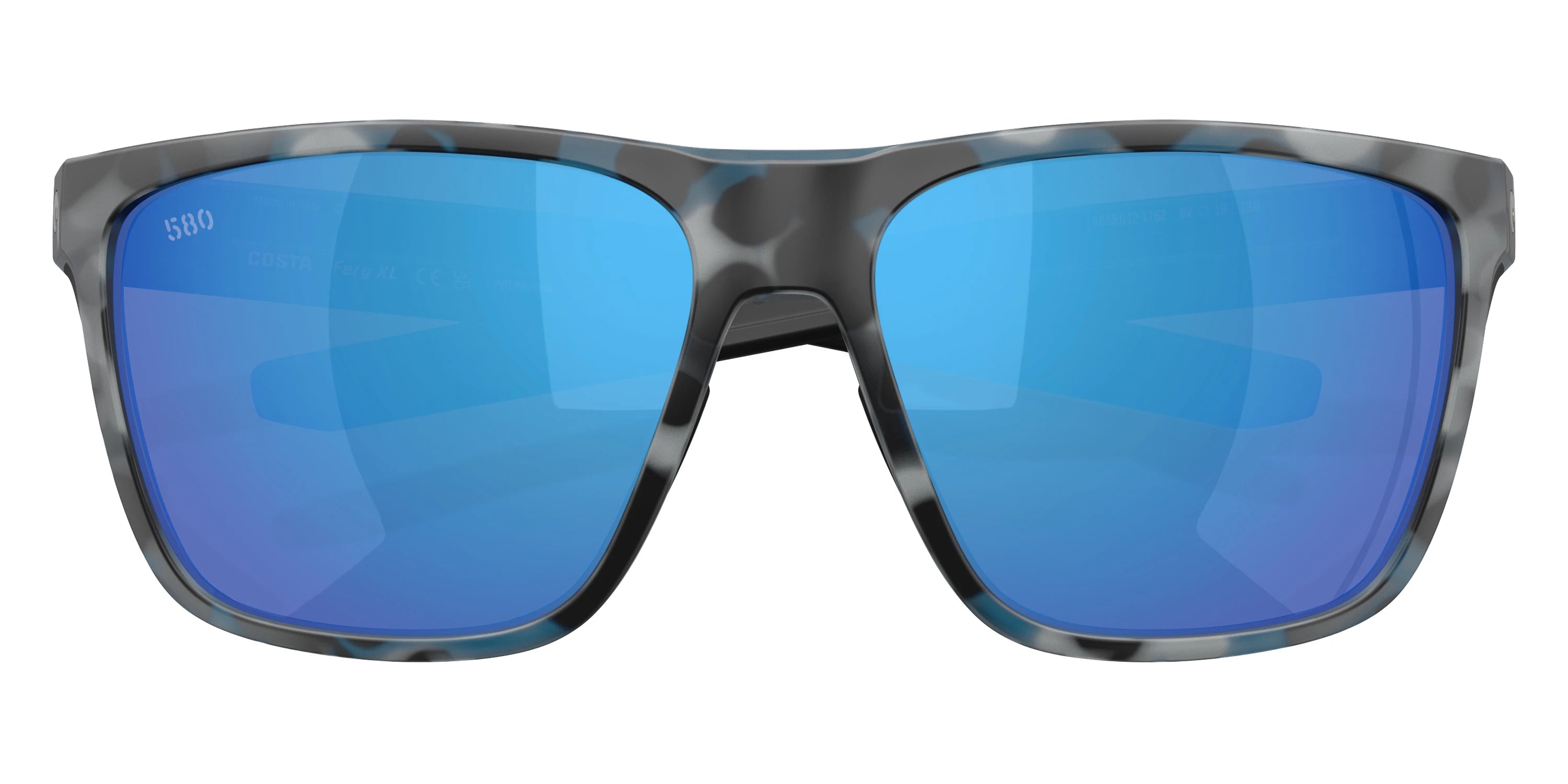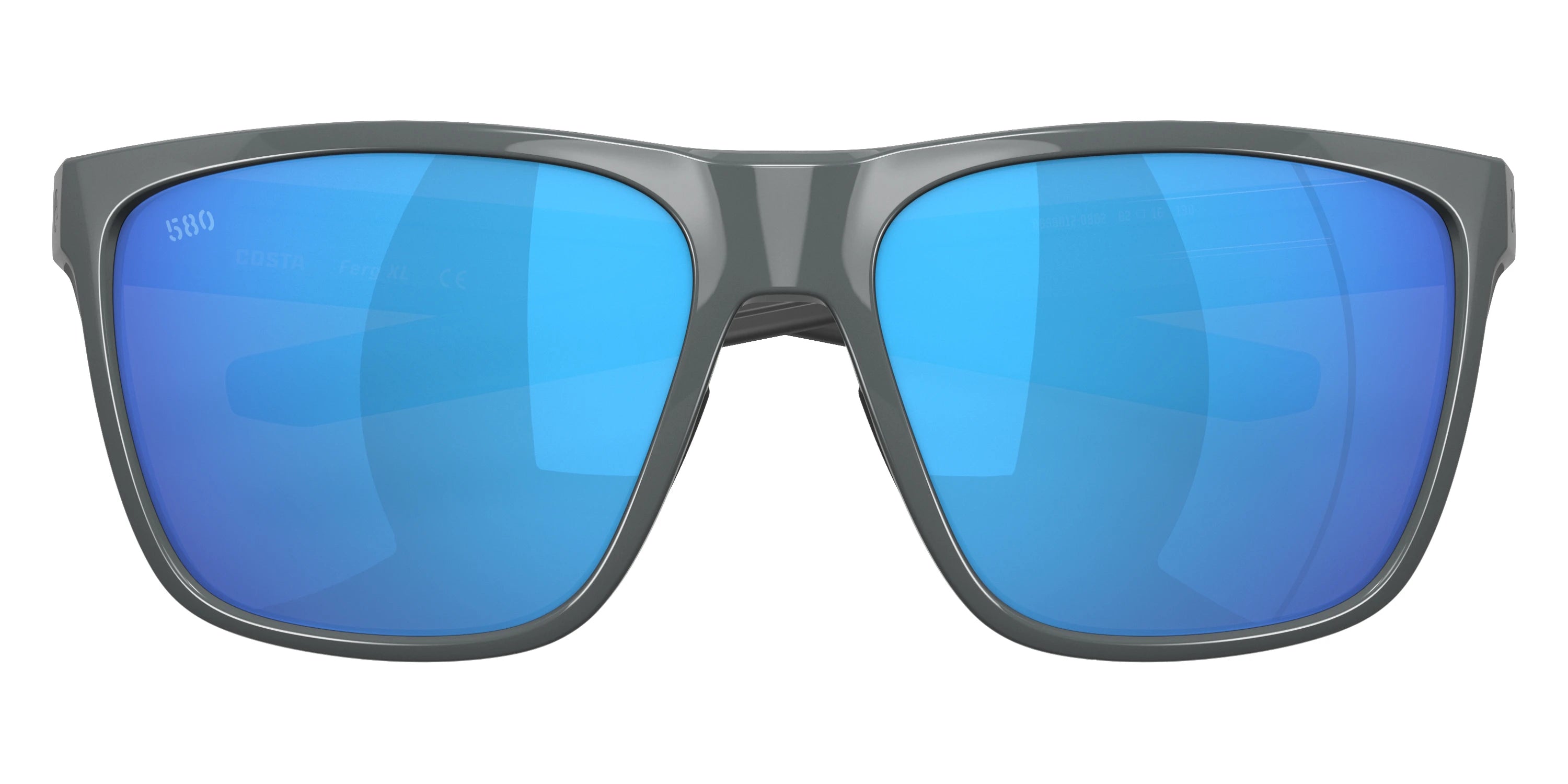 Shiny Gray frame with Blue Mirrored Polarized lenses, COSTA part 6S9012 Ferg XL 901208 62, has a Square Shape made out of Injected in size: 62-16-130. This model comes in Shiny Gray frame. Color Code: 901208 Shiny Gray