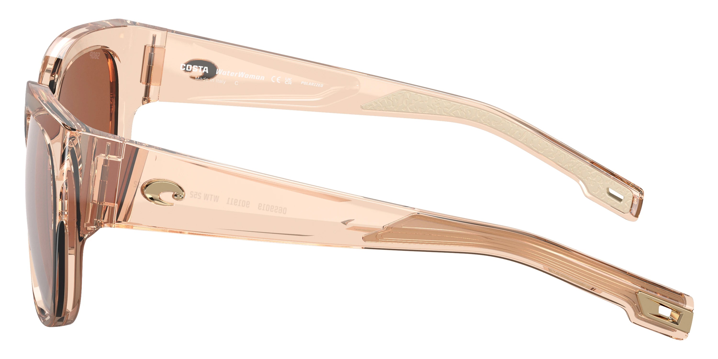 Shiny Blonde Crystal frame with Copper Silver Mirrored Polarized lenses, COSTA part 6S9019 Waterwoman 901911 55, has a Square Shape made out of Injected in size: 55-18-132. This model comes in Shiny Blonde Crystal frame. Color Code: 901911 Shiny B