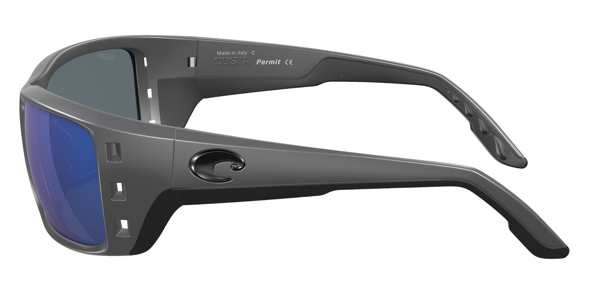 Matte Gray (902210) Sunglasses with Blue Mirrored Polarized lenses (6S9022 Permit 902210 62) by COSTA. Size: 62-16-125, Shape: Square, Material: Injected.