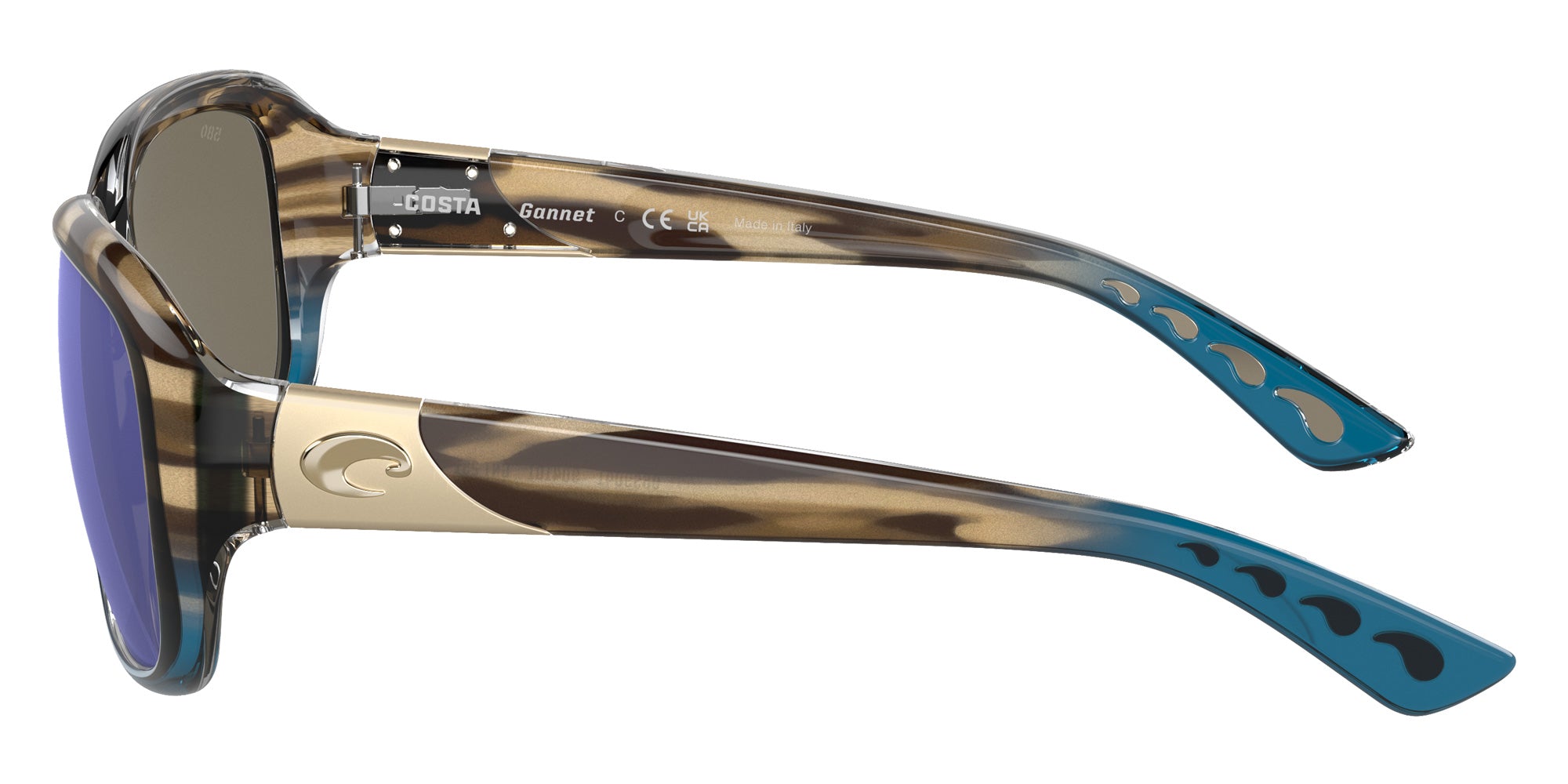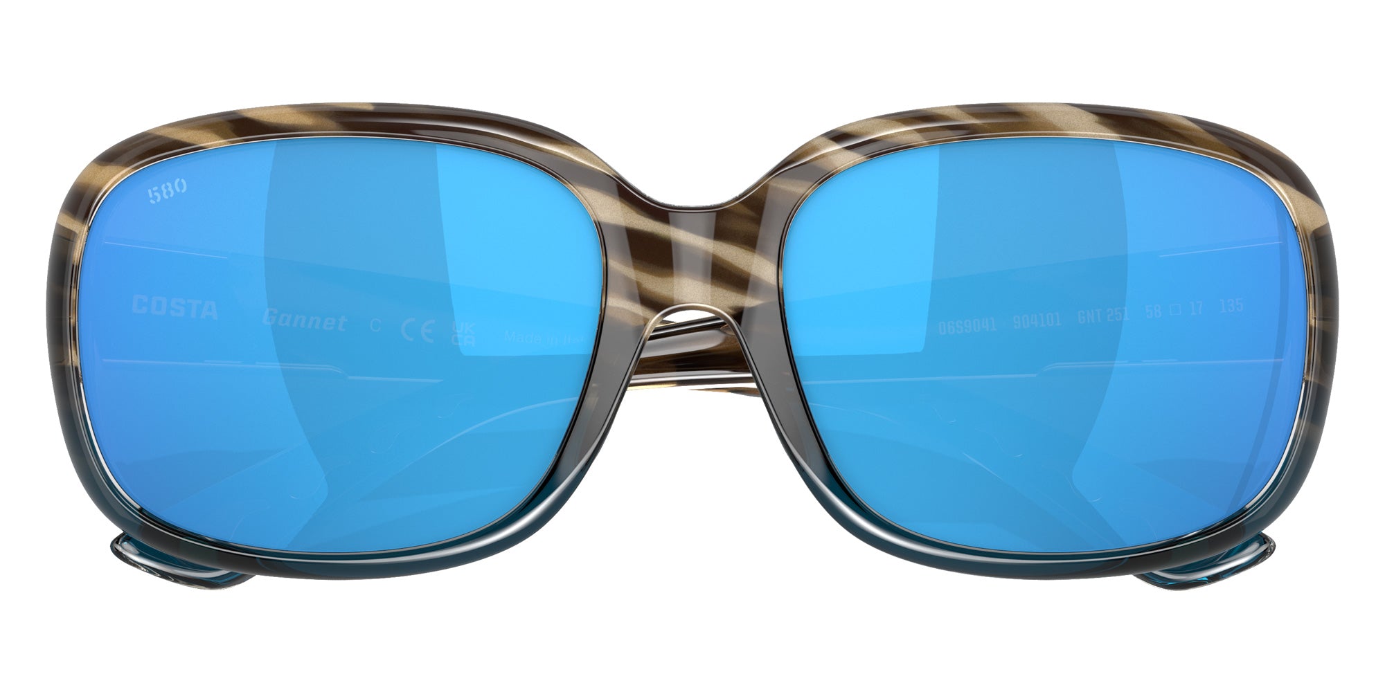 Shiny Wahoo (904101) Sunglasses with Blue Mirrored Polarized lenses (6S9041 Gannet 904101 58) by COSTA. Size: 58-17-135, Shape: Square, Material: Injected.