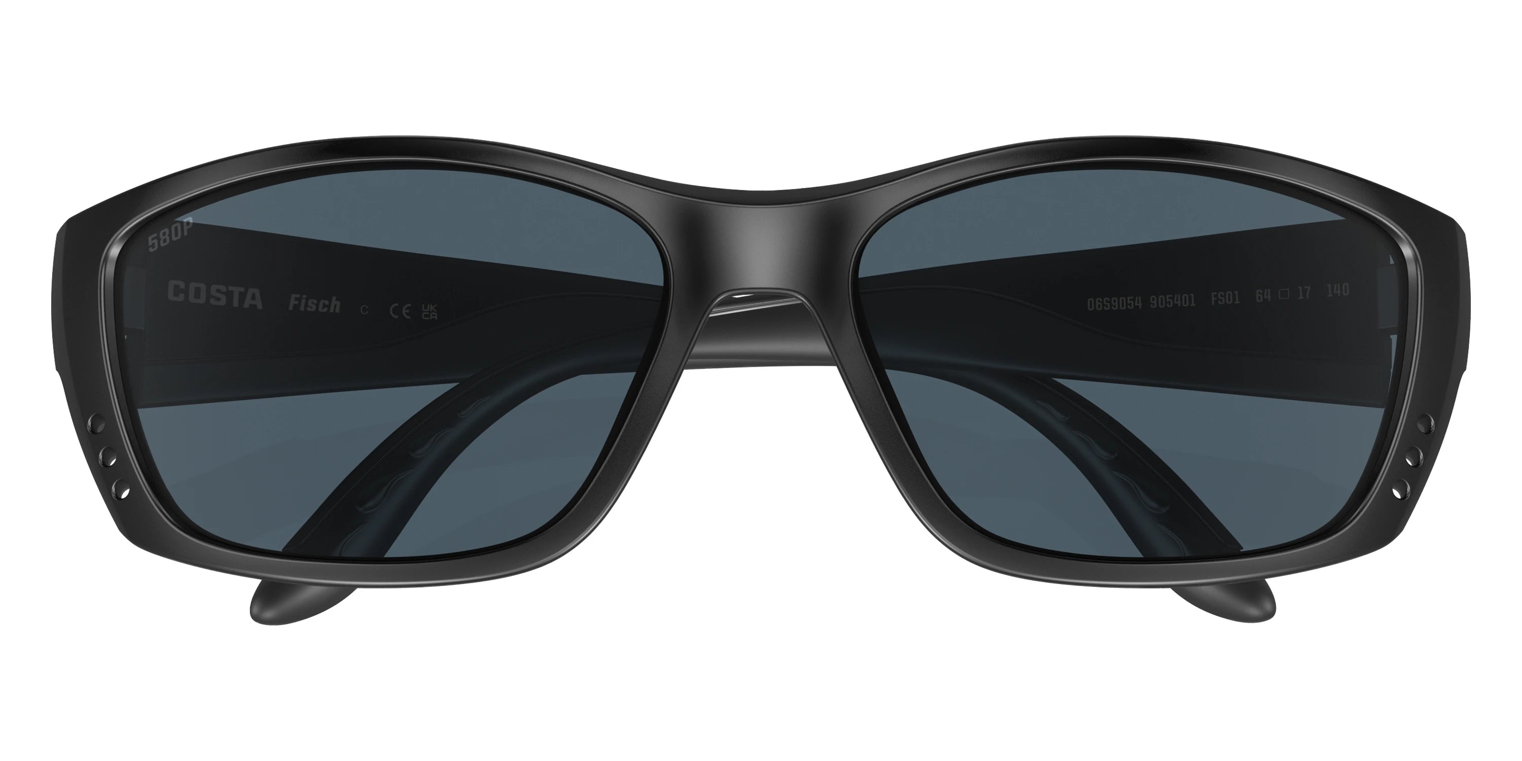 Blackout frame with Gray Polarized lenses, COSTA part 6S9054 Fisch 905401 64, has a Irregular Shape made out of Injected in size: 64-17-140. This model comes in Blackout frame. Color Code: 905401 Blackout