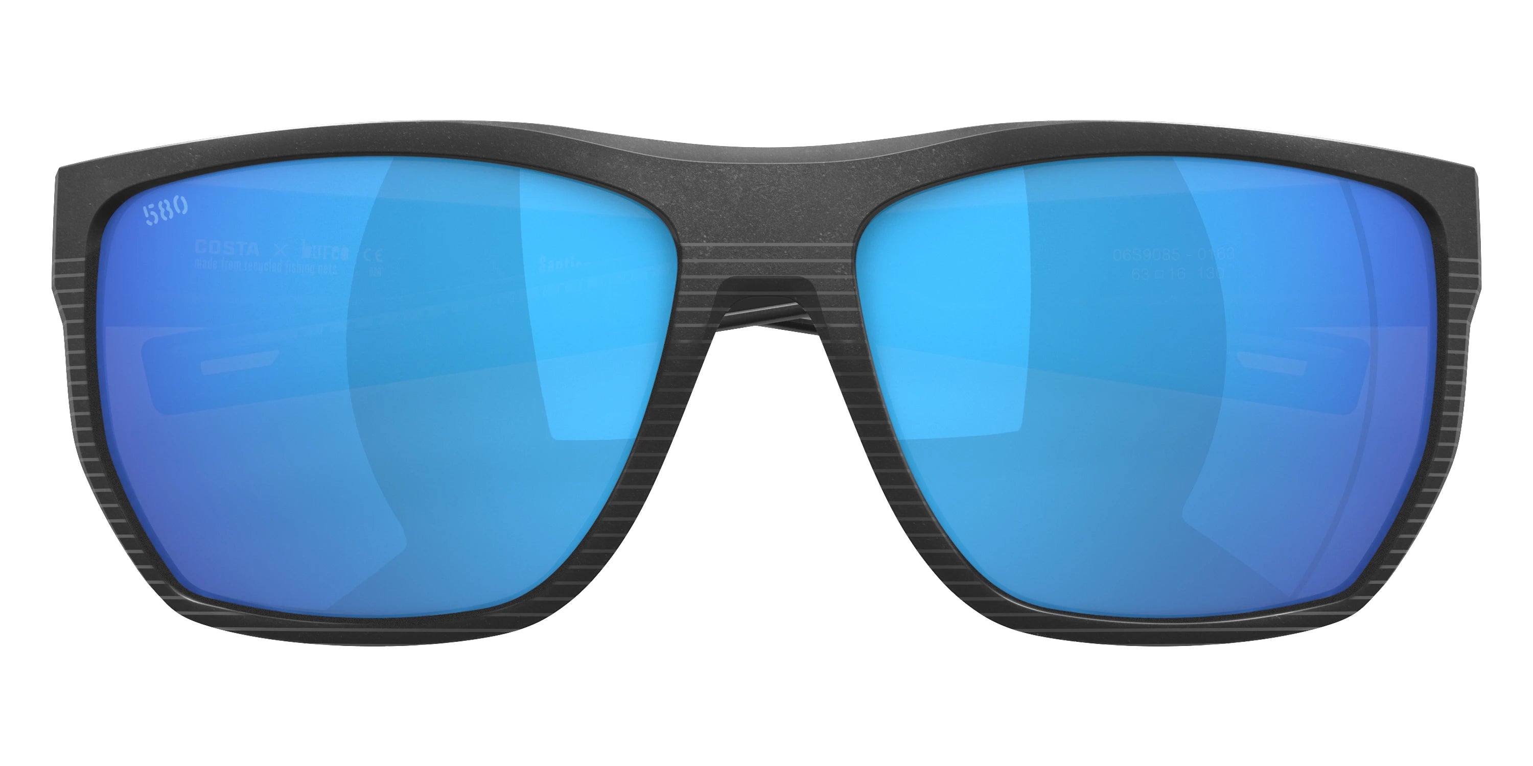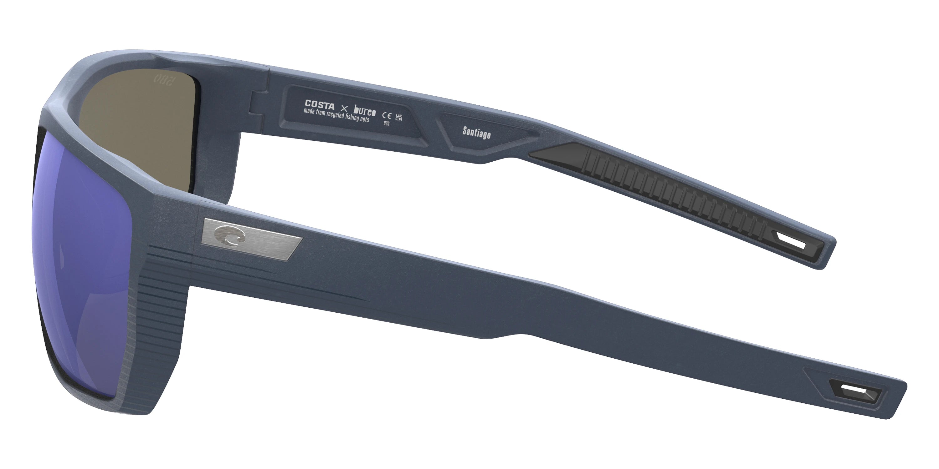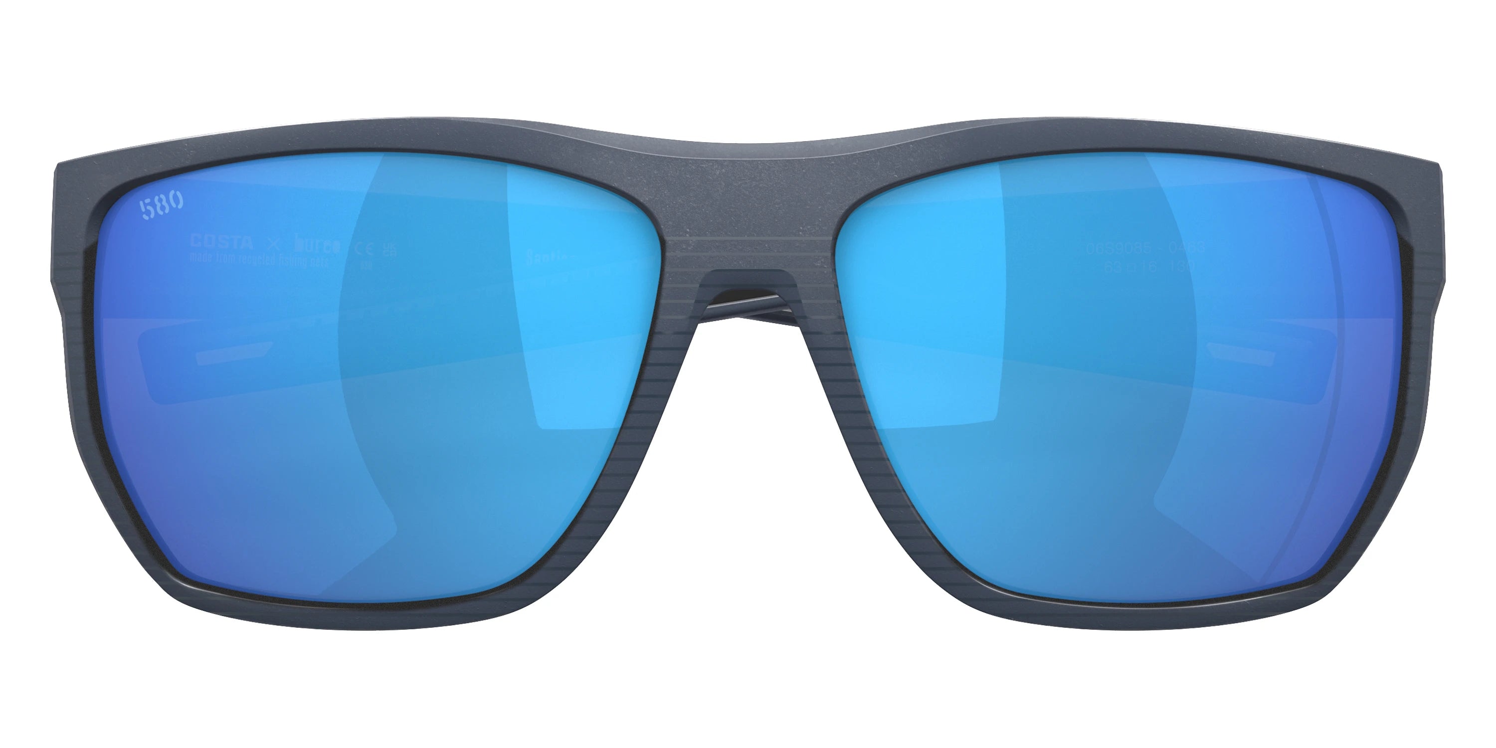 Midnight Blue frame with Blue Mirrored Polarized lenses, COSTA part 6S9085 Santiago 908504 63, has a Rectangle Shape made out of Injected and Nylon in size: 63-16-130. This model comes in Midnight Blue frame. Color Code: 908504 Midnight Blue