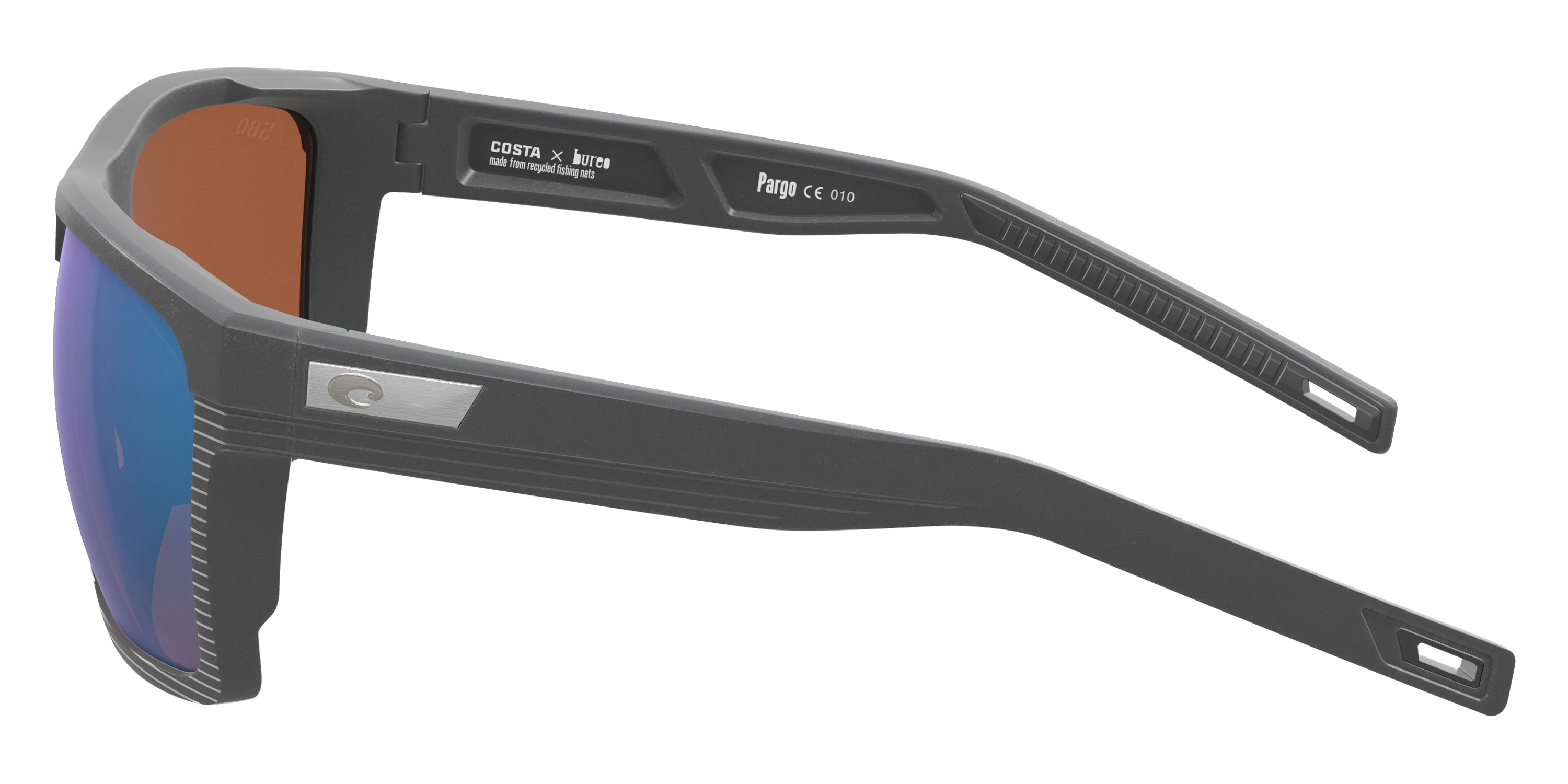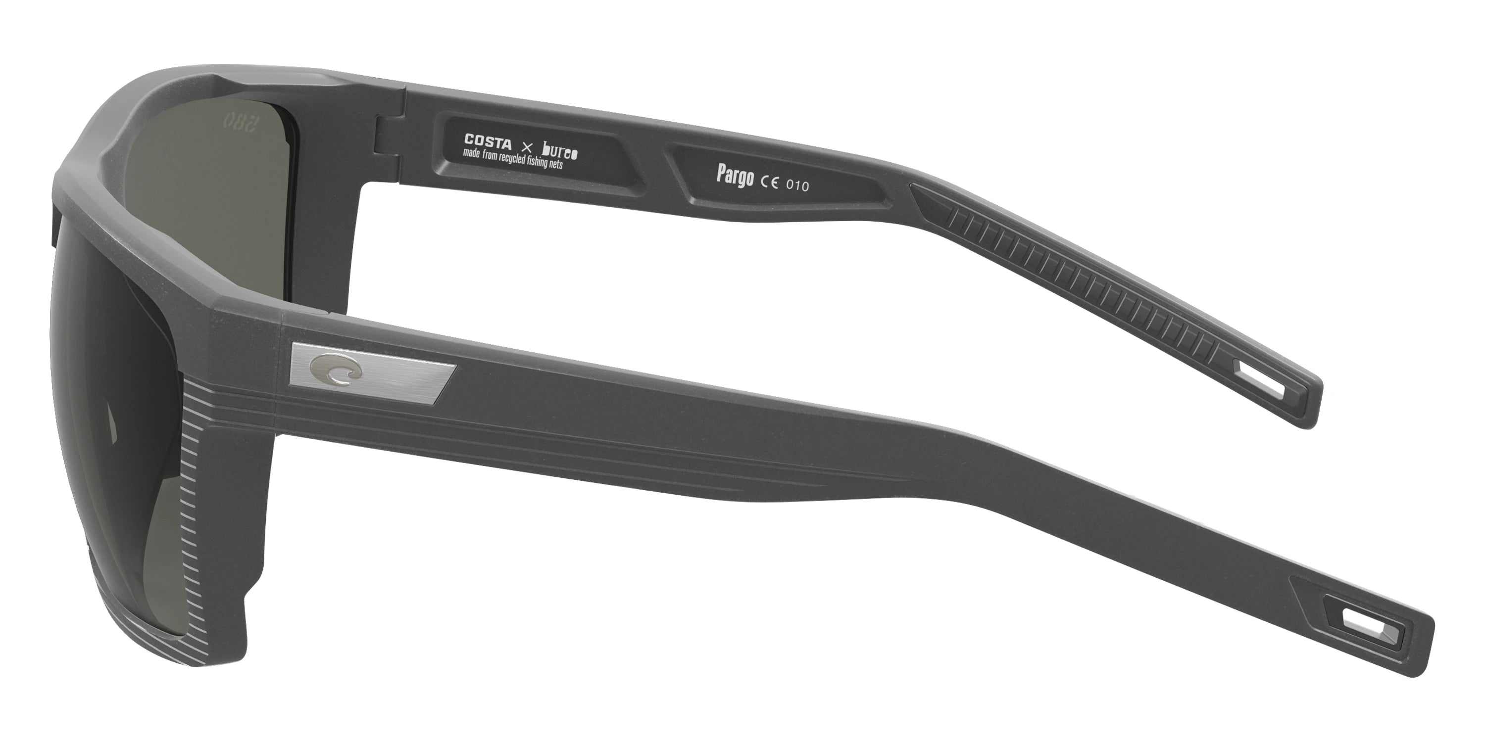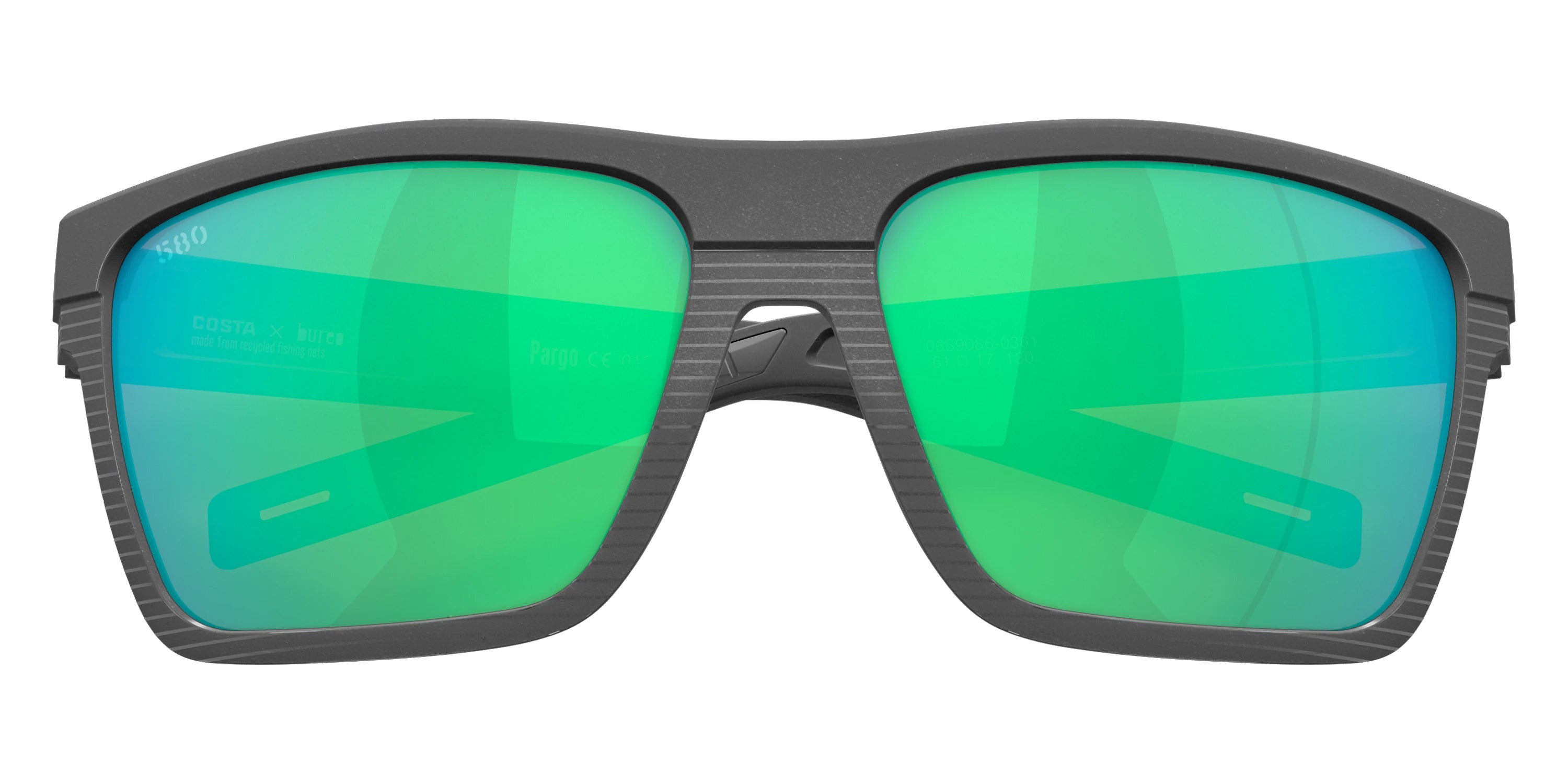 Dark Gray/Net Dark Gray frame with Green Mirrored Polarized lenses, COSTA part 6S9086 Pargo 908603 61, has a Square Shape made out of Injected and Nylon in size: 61-17-130. This model comes in Dark Gray/Net Dark Gray frame. Color Code: 908603 Dark