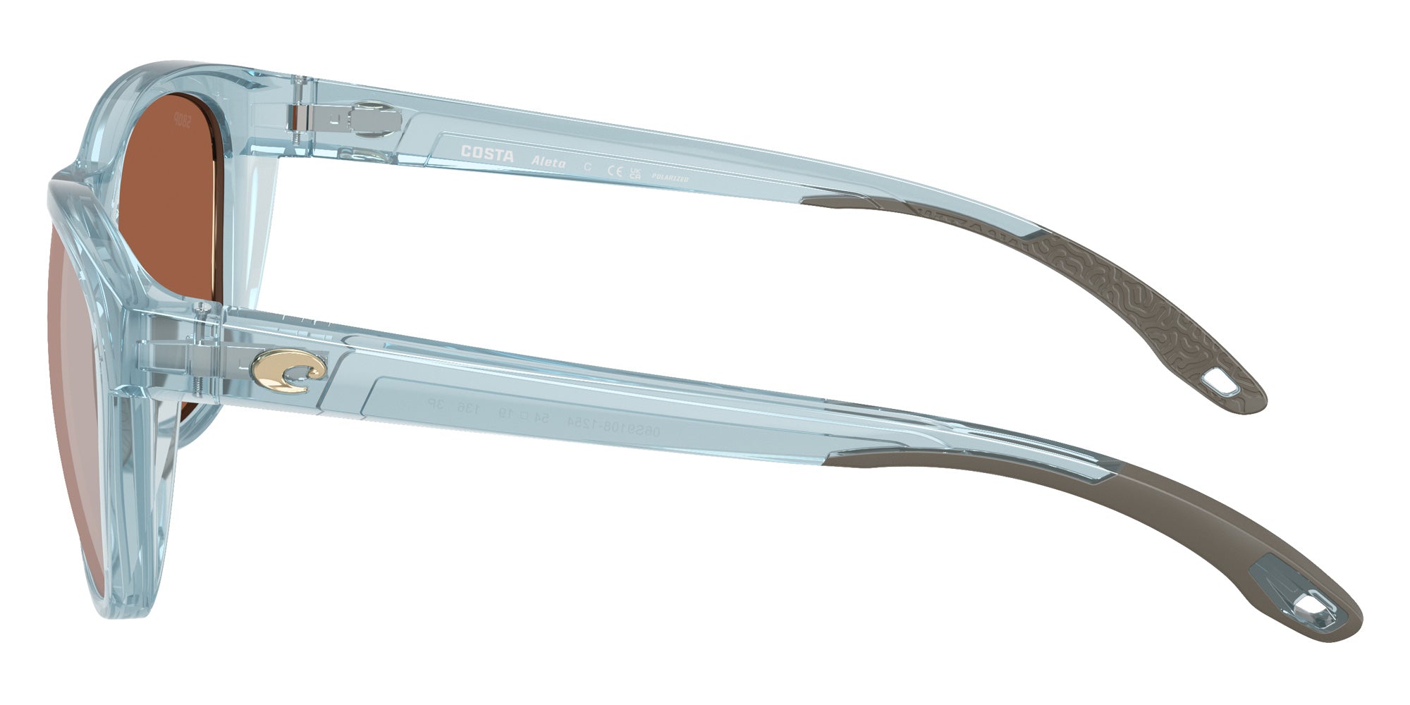 Taupe Crystal (910803) Sunglasses with Copper Silver Mirrored Polarized lenses (6S9108 Aleta 910803 54) by COSTA. Size: 54-19-136, Shape: Round, Material: Injected.