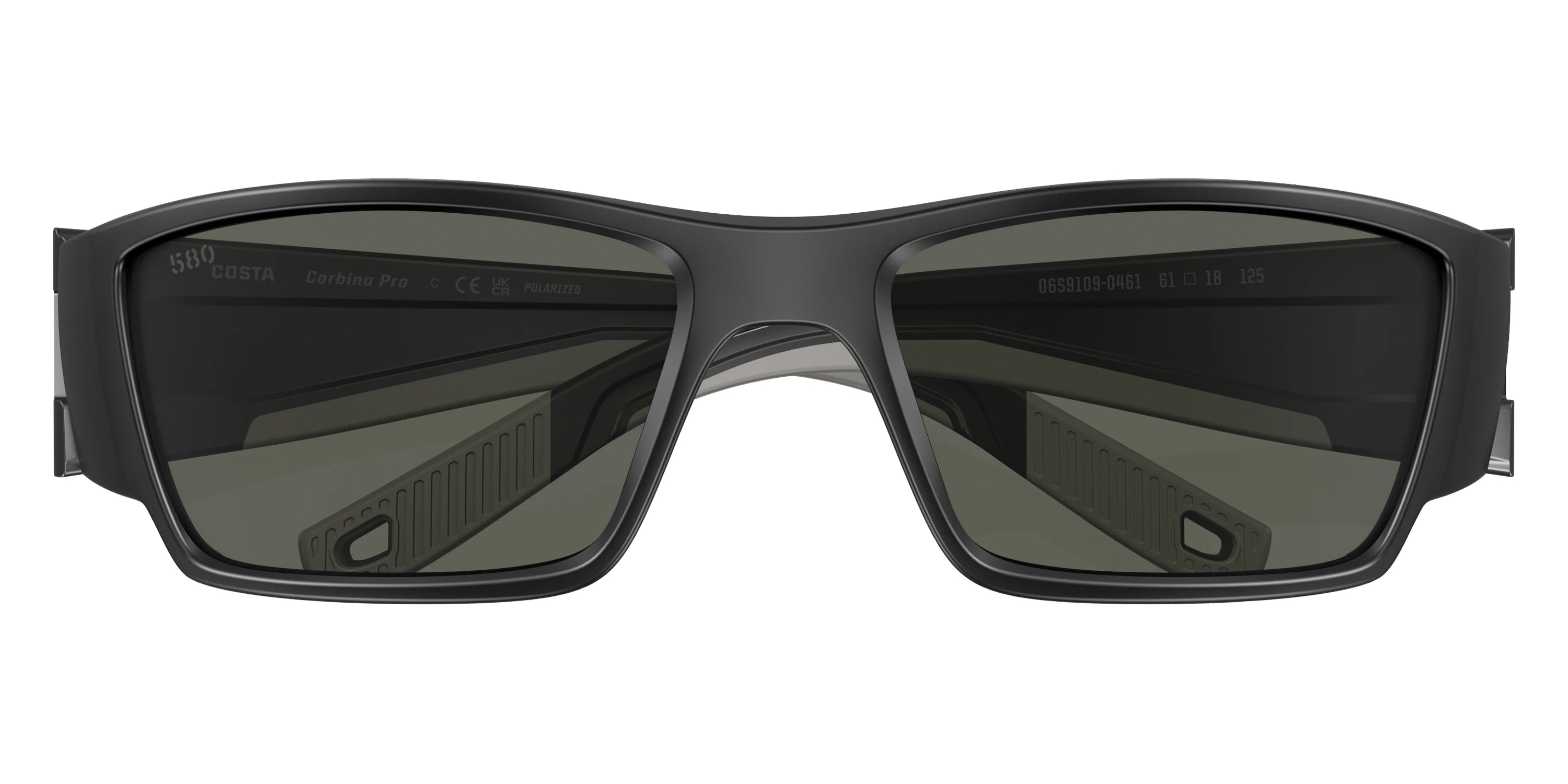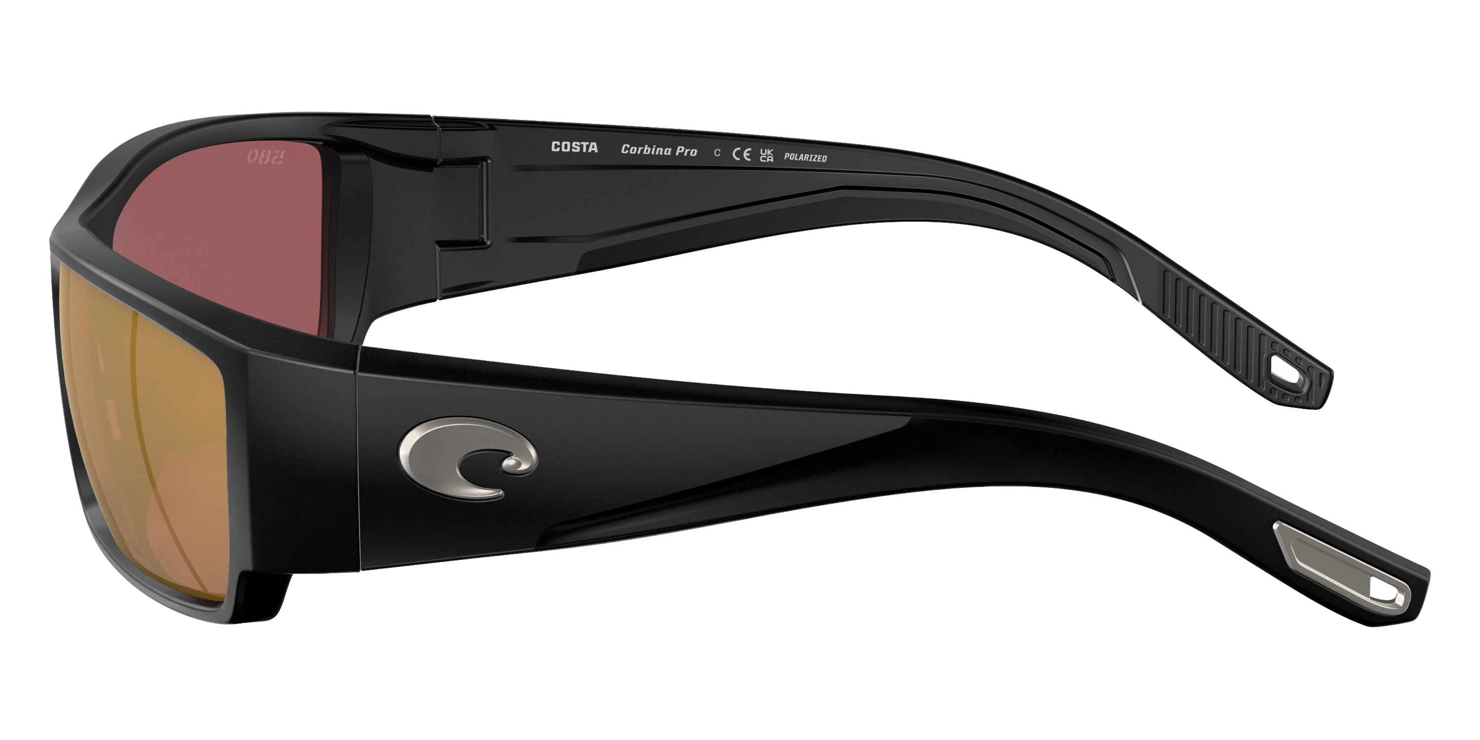 Matte Black frame with Gold Mirrored Polarized lenses, COSTA part 6S9109 Corbina PRO 910911 61, has a Rectangle Shape made out of Injected in size: 61-18-125. This model comes in Matte Black frame. Color Code: 910911 Matte Black