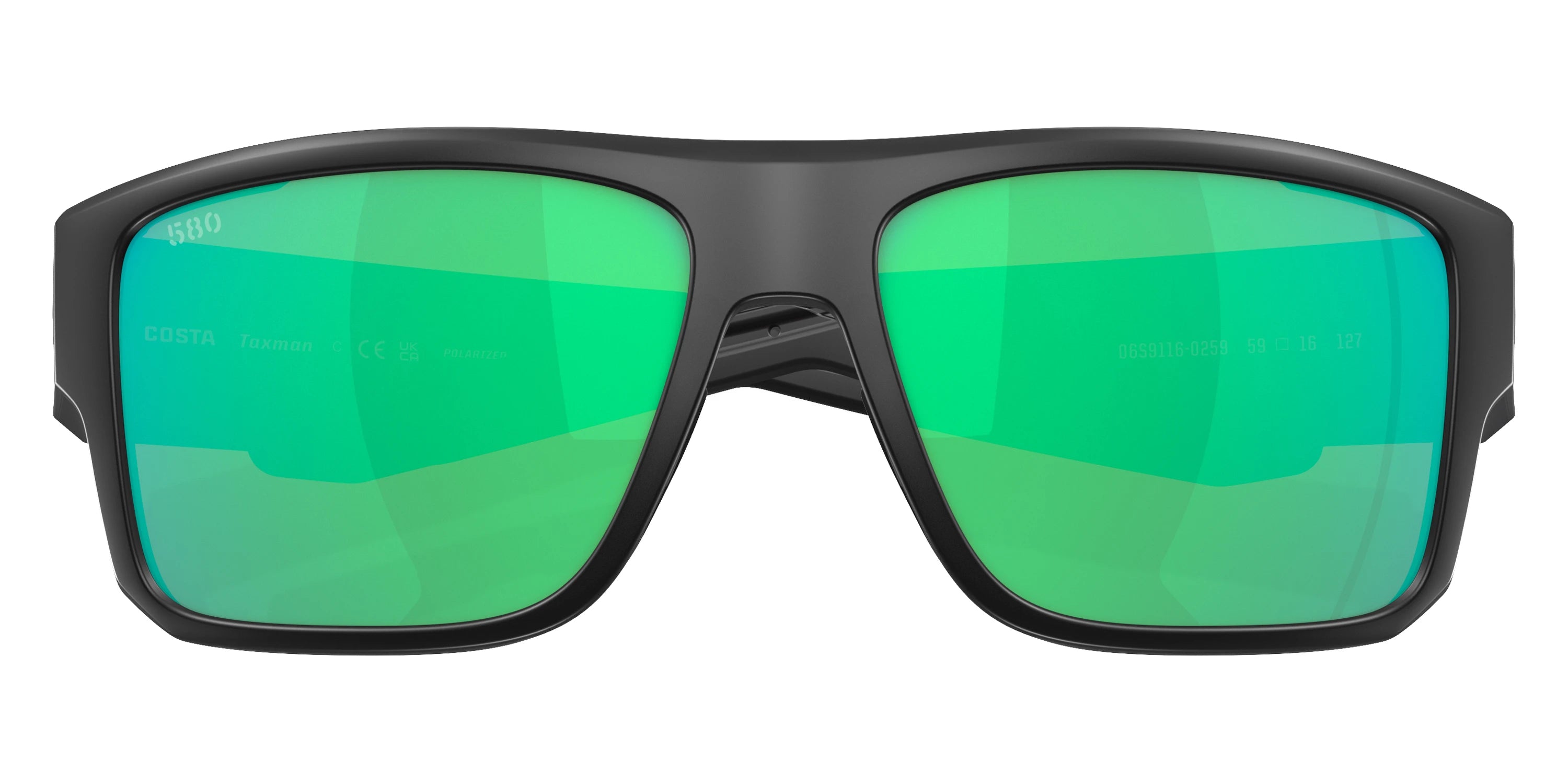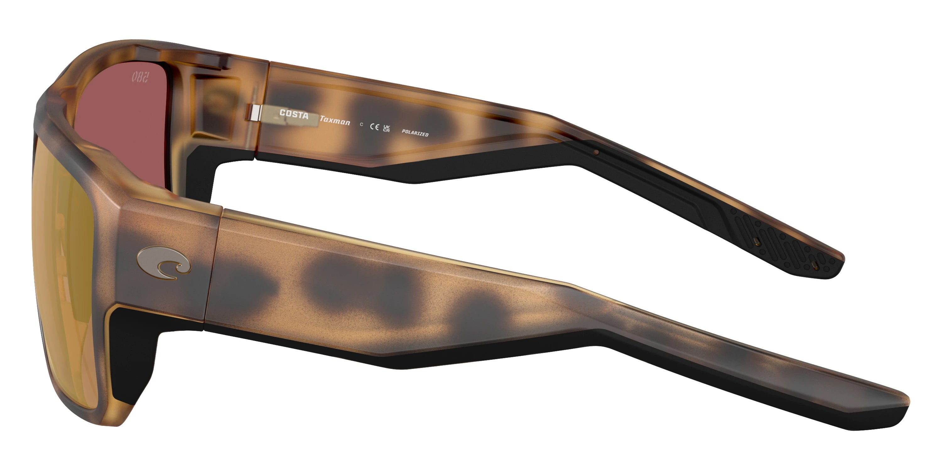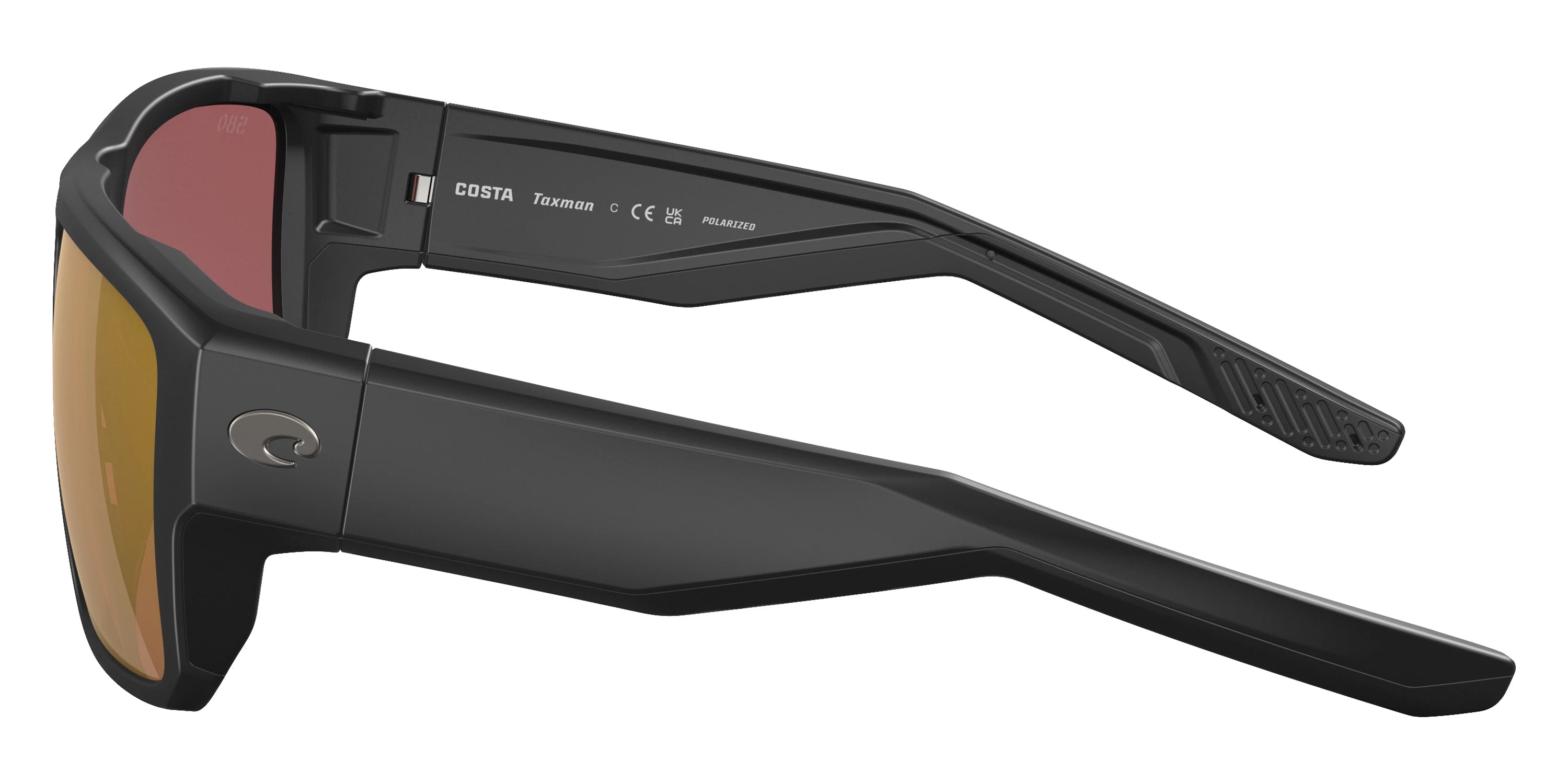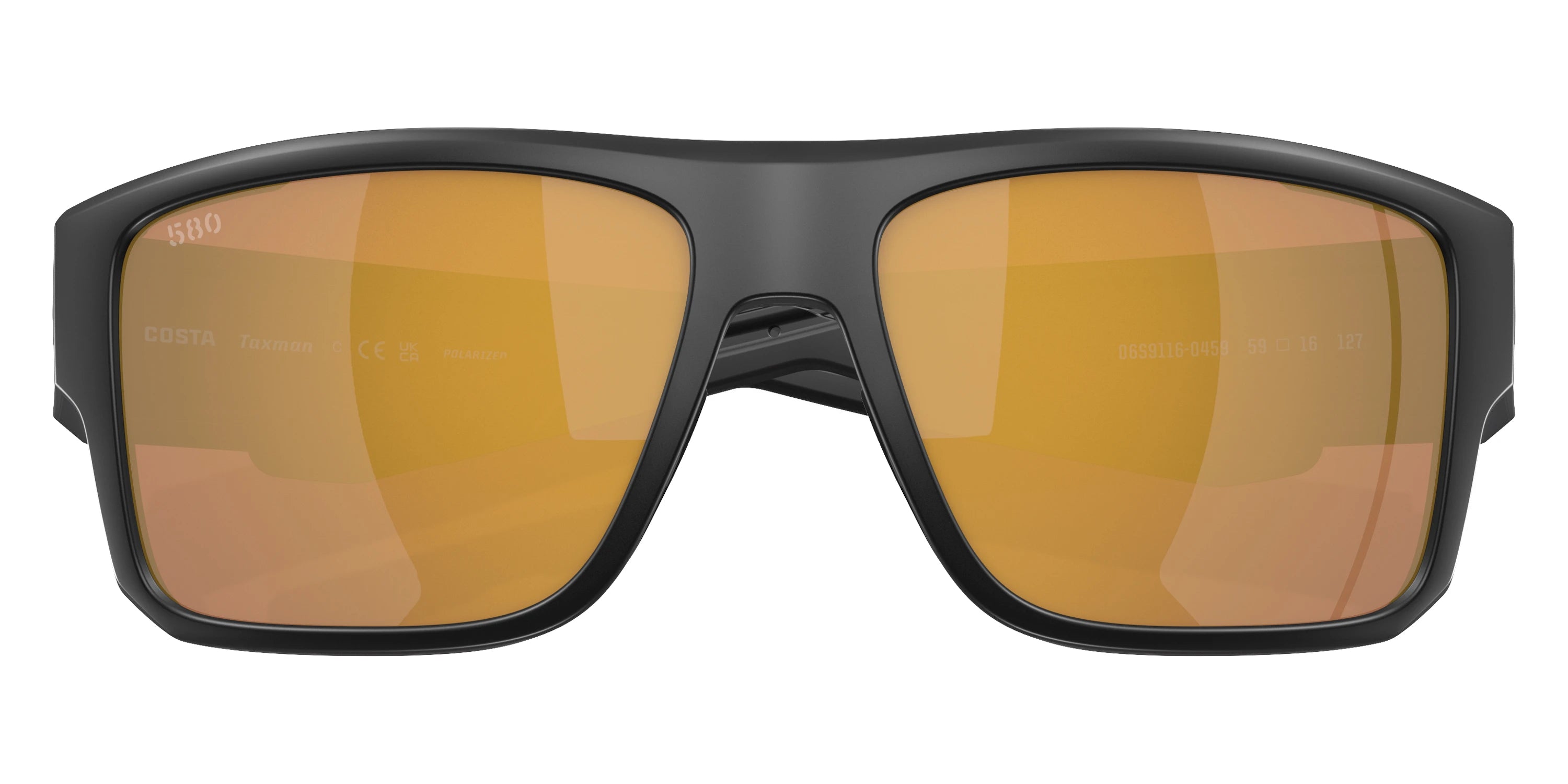 Matte Black frame with Gold Mirrored Polarized lenses, COSTA part 6S9116 Taxman 911604 59, has a Rectangle Shape made out of Injected in size: 59-16-127. This model comes in Matte Black frame. Color Code: 911604 Matte Black