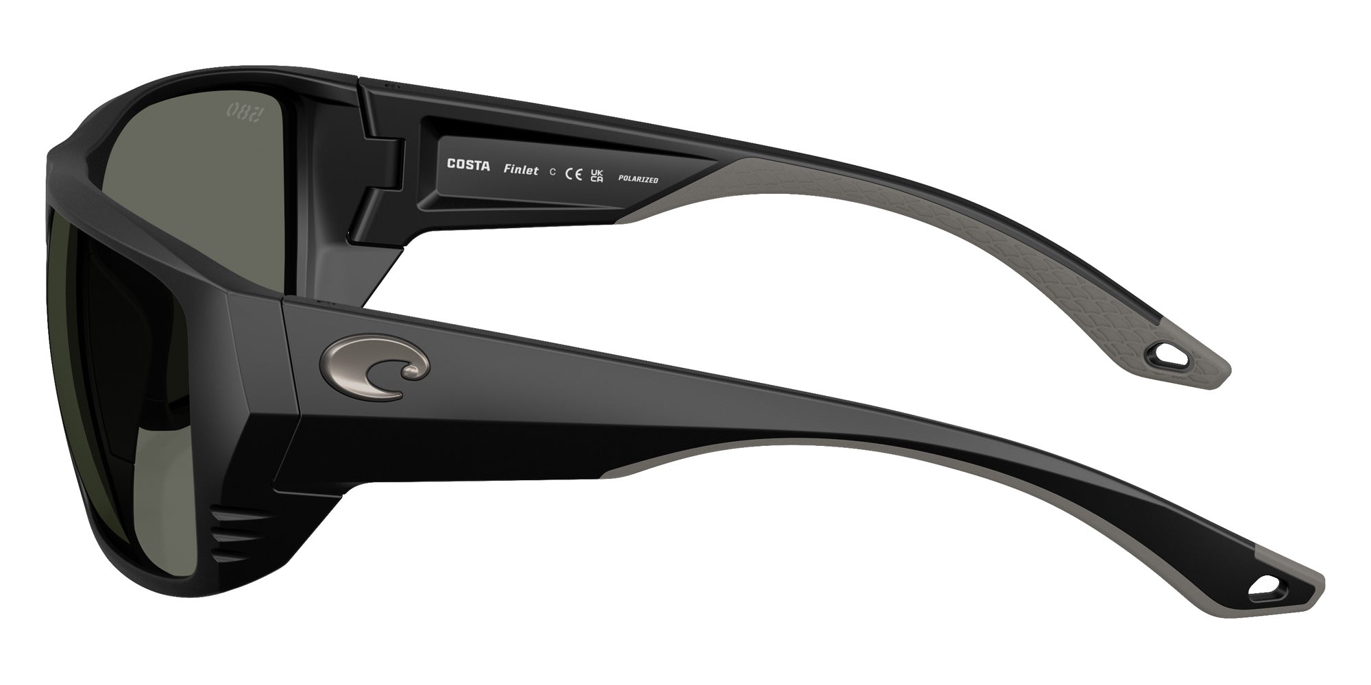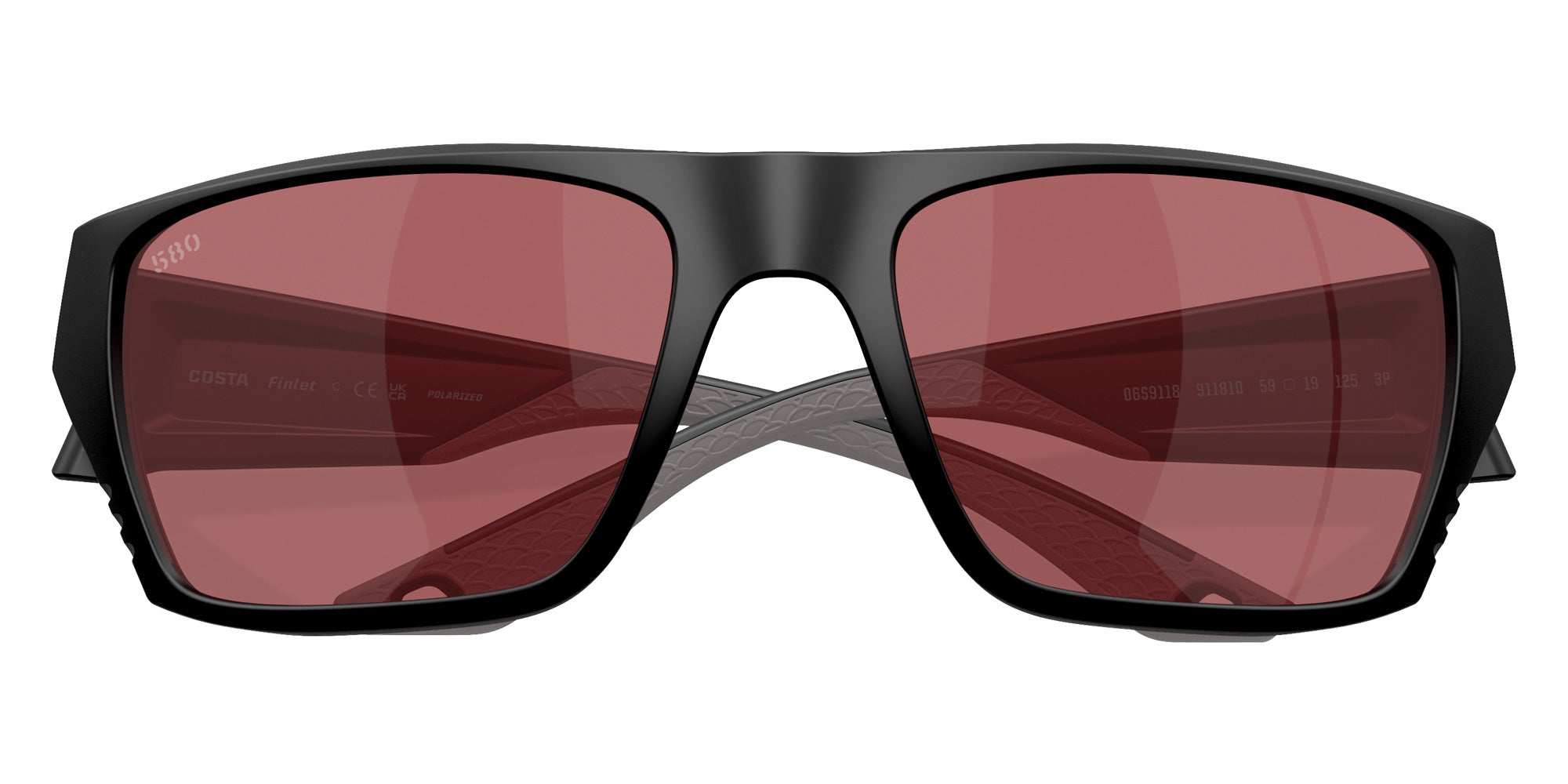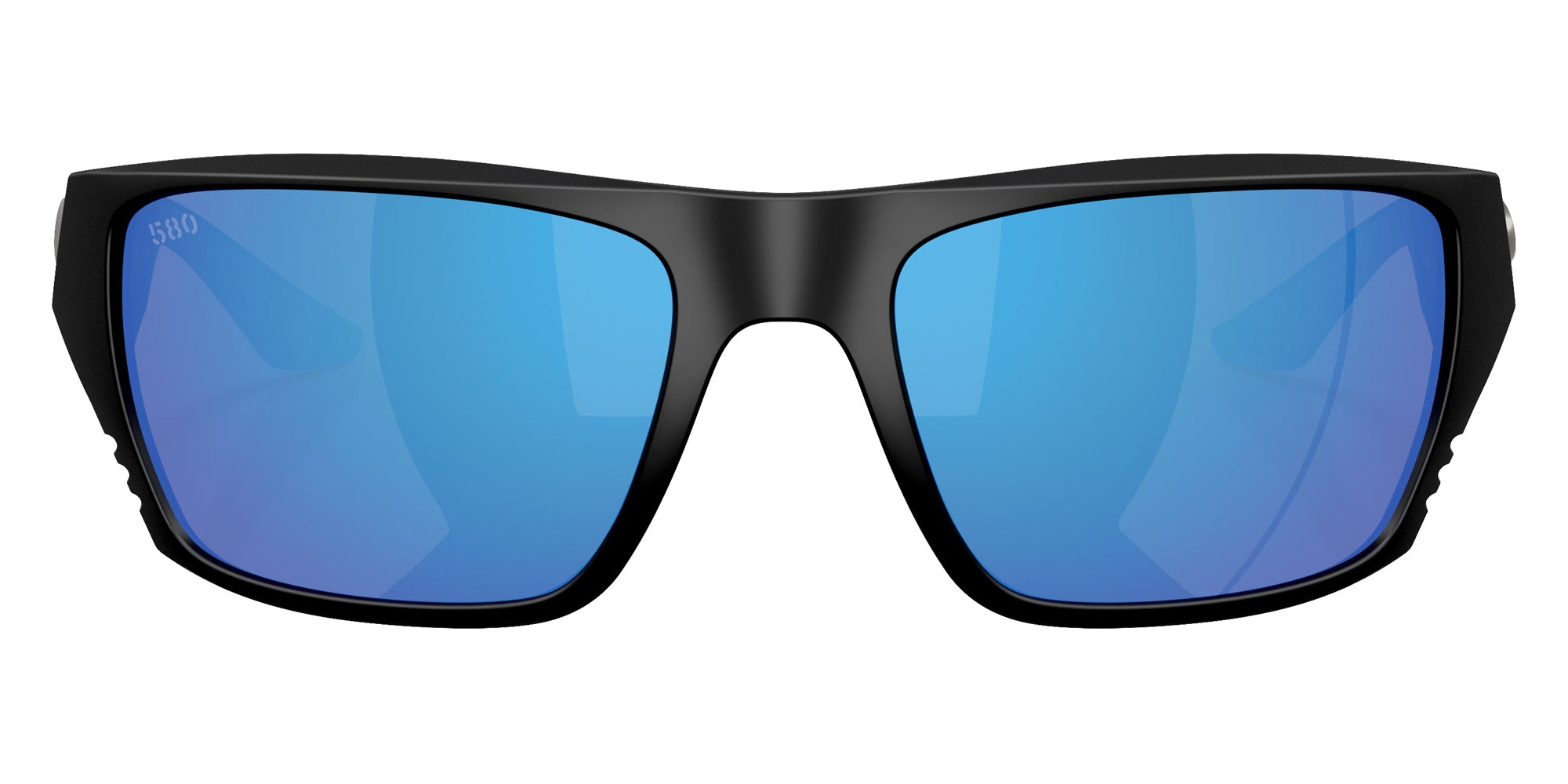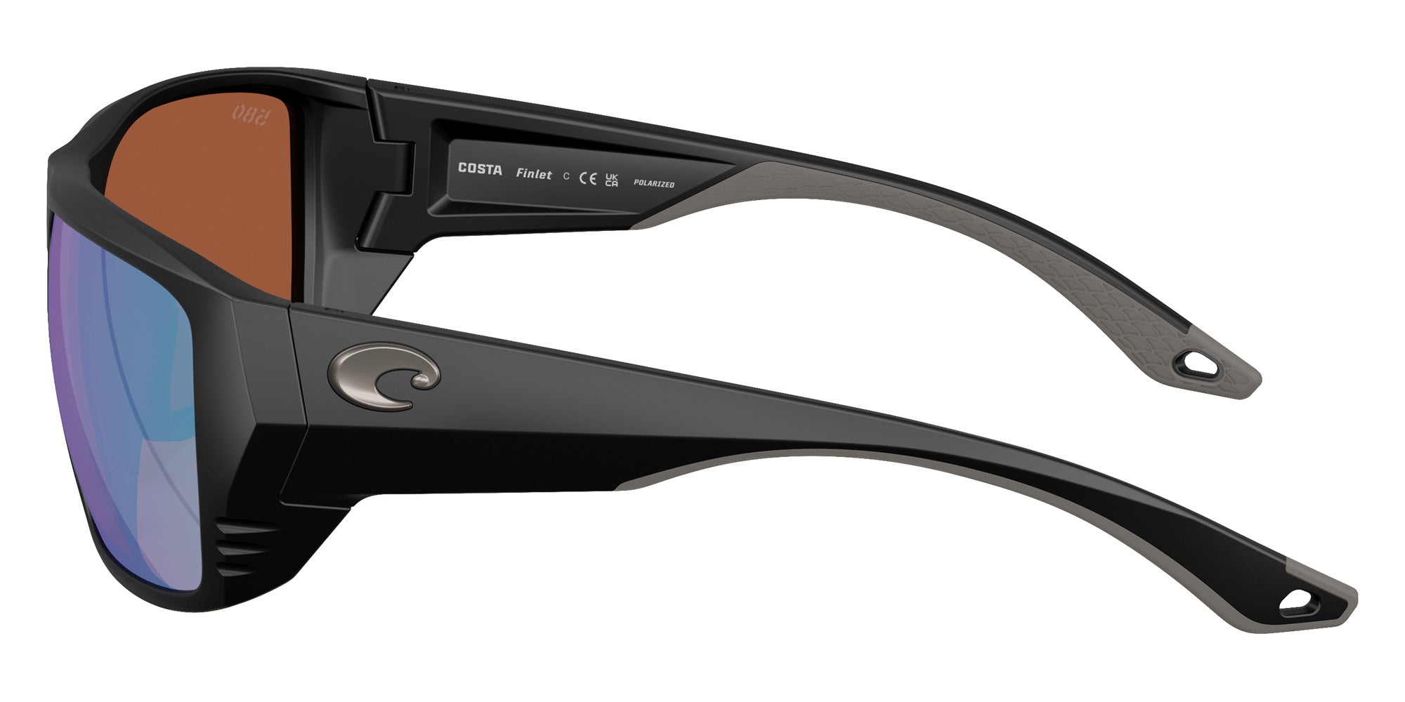 Matte Black (911801) Sunglasses with Blue Mirrored Polarized lenses (6S9118 Finlet 911801 59) by COSTA. Size: 59-19-125, Shape: Rectangle, Material: Injected.