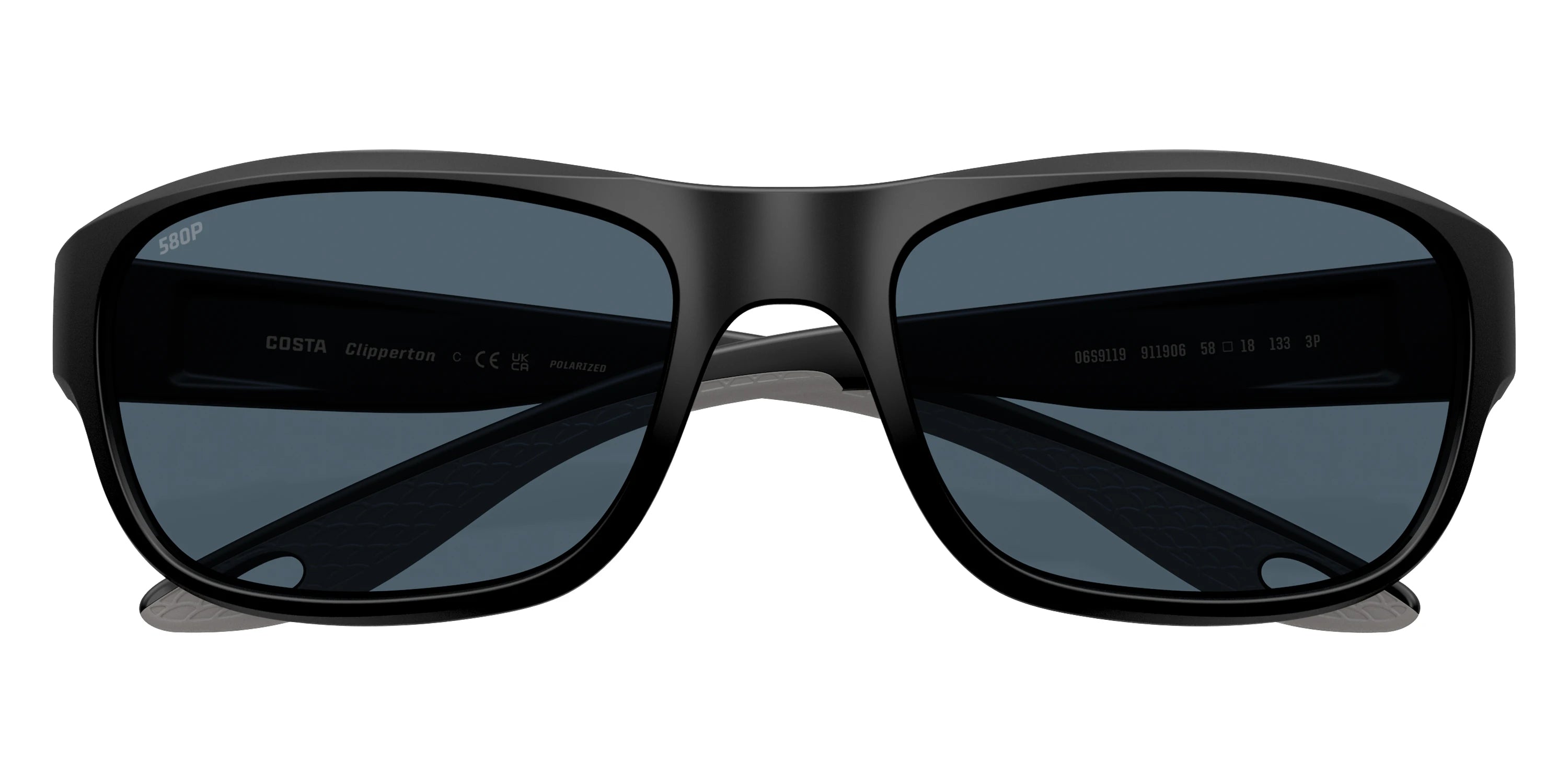 Matte Black frame with Gray Polarized lenses, COSTA part 6S9119 Clipperton 911906 58, has a Rectangle Shape made out of Injected in size: 58-18-133. This model comes in Matte Black frame. Color Code: 911906 Matte Black