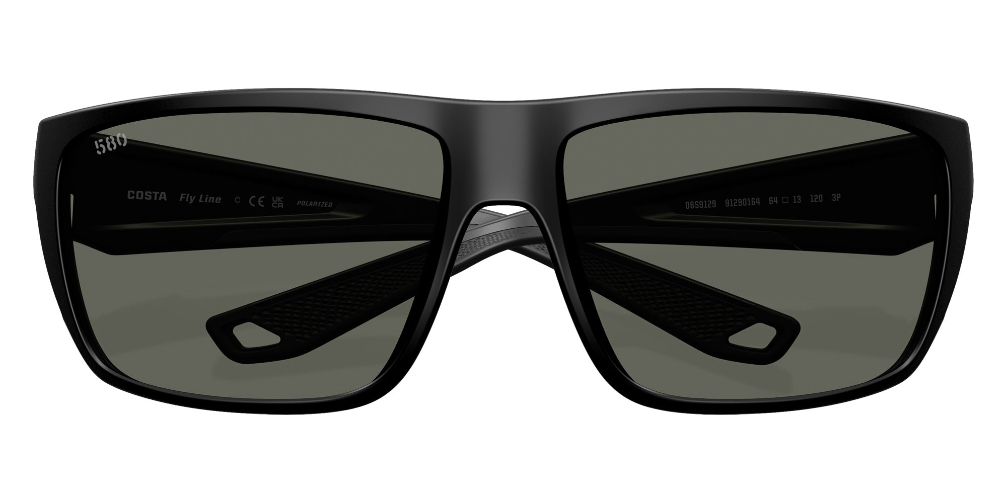 Matte Black (912901) Sunglasses with Gray Polarized lenses (6S9129 Fly Line 912901 64) by COSTA. Size: 64-13-120, Shape: Rectangle, Material: Injected.