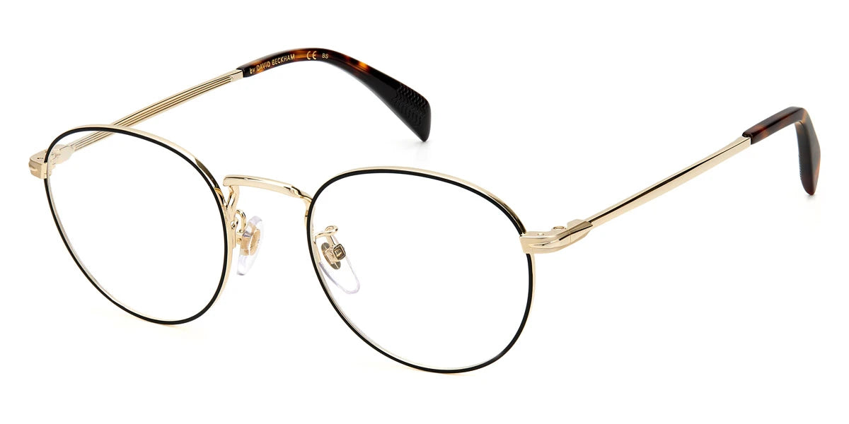 Gold Black (0RHL) Eyeglasses (DB 1015 0RHL 50) by David Beckham™. Size: 50-21-145, Shape: Oval, Material: Metal.