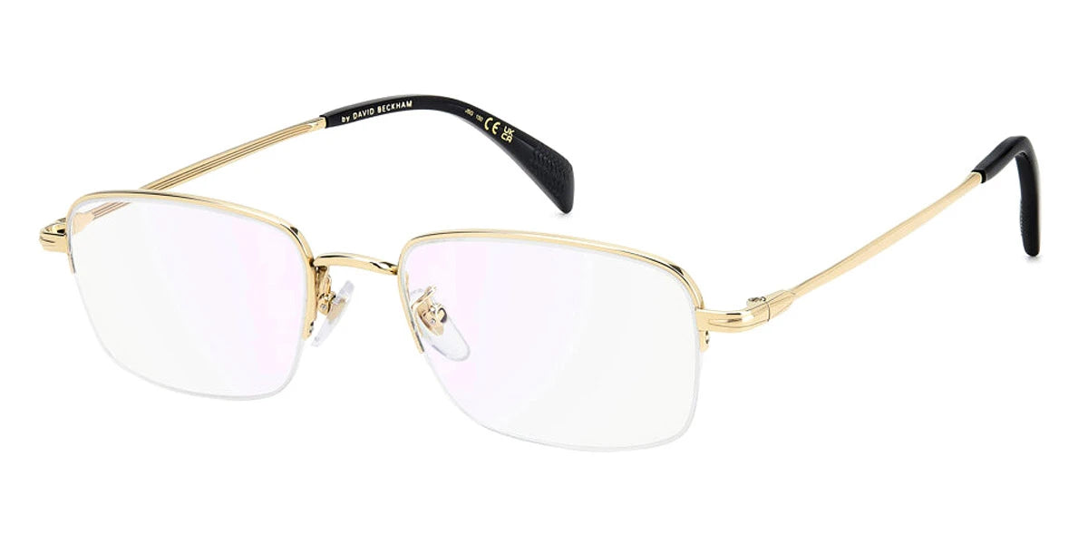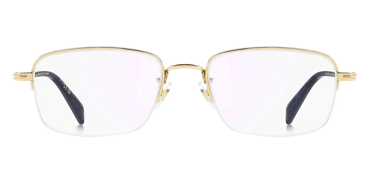 Gold (0J5G) Eyeglasses with Blue Mirrored lenses (DB 1190/F 0J5G 54) by David Beckham™. Size: 54-19-150, Shape: Rectangle, Material: Metal and Titanium.