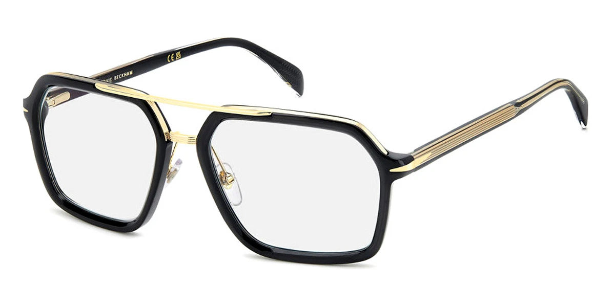 Black Gold (02M2) Eyeglasses with Blue Mirrored lenses (DB 7128 02M2 56) by David Beckham™. Size: 56-18-150, Shape: Rectangle, Material: Acetate.