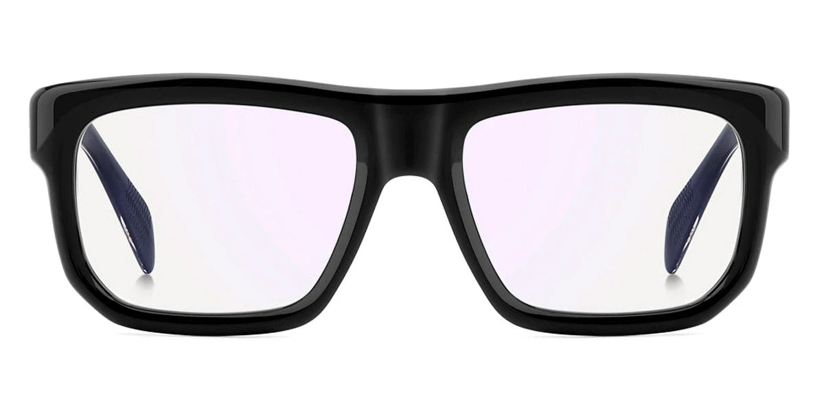 Black (0807) Eyeglasses with Blue Mirrored lenses (DB 7137 0807 54) by David Beckham™. Size: 54-18-140, Shape: Rectangle, Material: Acetate.