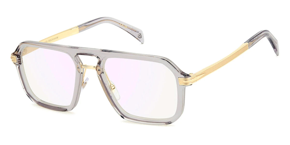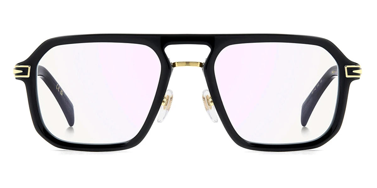 Black Gold (02M2) Eyeglasses with Blue Mirrored lenses (DB 7142 02M2 54) by David Beckham™. Size: 54-20-145, Shape: Rectangle, Material: Acetate and Metal.