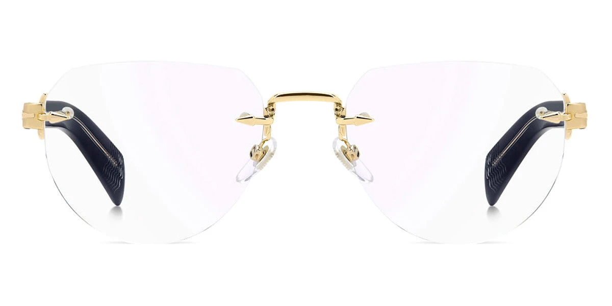 Gold Crystal (0LOJ) Eyeglasses with Blue Mirrored lenses (DB 7145 0LOJ 54) by David Beckham™. Size: 54-20-145, Shape: Aviator, Material: Metal and Acetate.