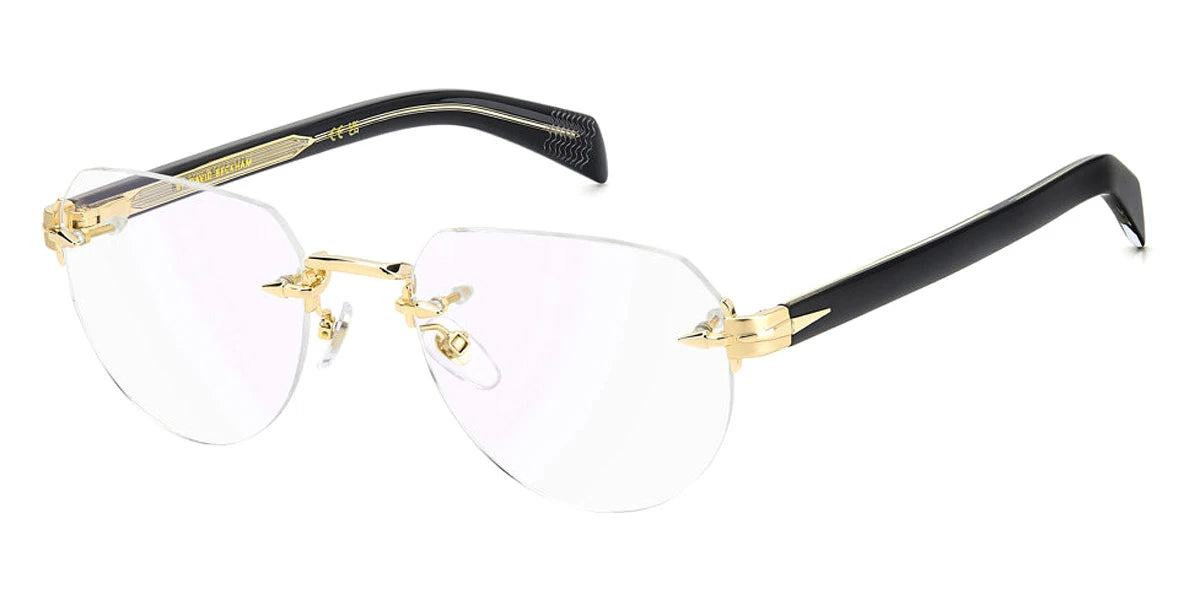 DB 7145 Eyeglasses by David Beckham™. The aviator shape design feature a rimless metal and acetate frame. This model is available in two different color combinations and sizes. David Beckham is a celebrity who has many wonderful talents in fashion and style. In cooperation with an outstanding company Safilo, he has created and introduced his brand of elegant eyewear with his monogram. Undoubtedly, this famous person has a perfect feeling of taste because each product from his collections looks like a masterpiece. Inspired by British elegance, this eyewear has lightweight frames and high-quality lenses. Emphasize your individuality with a great pair of luxury eyeglasses or sunglasses that will make you the center of attraction.