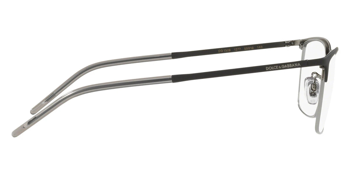 Eyeglasses (DG1309 1277 57) by DOLCE & GABBANA™. Color: Matte Black/Gunmetal, Shape: Rectangle, Material: Metal, Frame Type: Full Rim, Frame Size: 57-18-145.