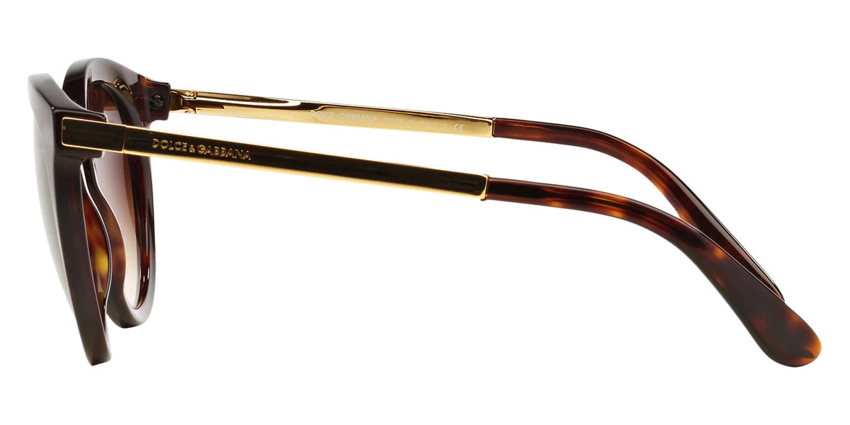 Sunglasses (DG4268 502/13 52) by DOLCE & GABBANA™. Color: Havana, Shape: Round, Material: Plastic, Lenses: Brown Gradient, Frame Type: Full Rim, Frame Size: 52-22-140.