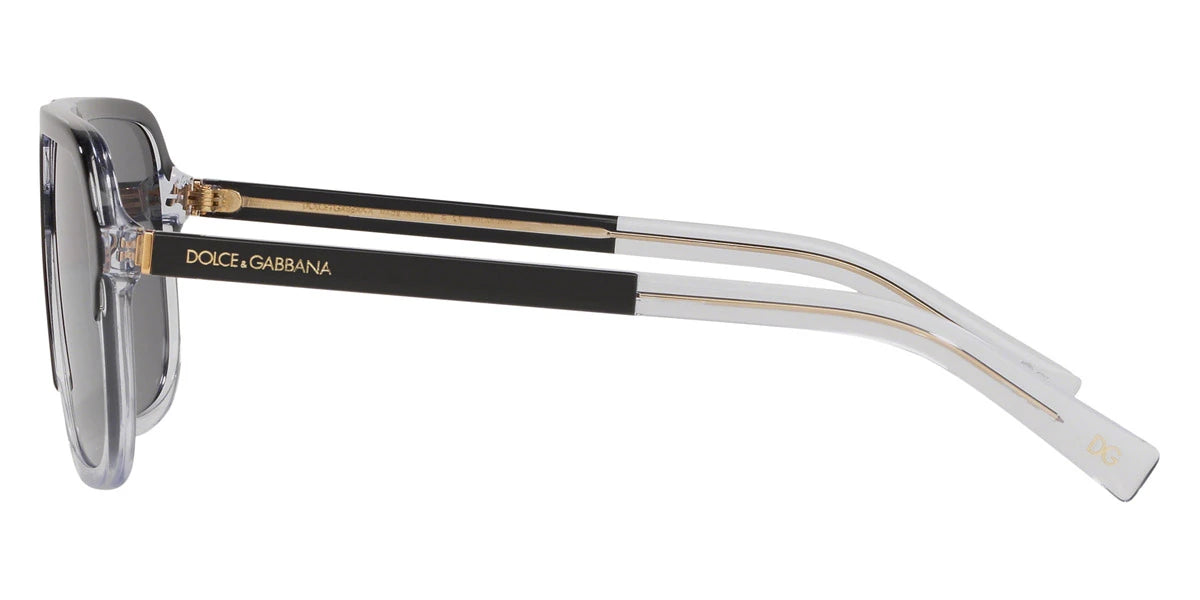 Top Black on Crystal (501/81) Sunglasses with Dark Gray lenses (DG4354 501/81 58) by DOLCE & GABBANA™. Size: 58-15-145, Shape: Square, Material: Plastic.