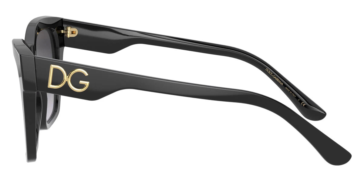 Sunglasses (DG4384 501/8G 53) by DOLCE & GABBANA™. Color: Black, Shape: Square, Material: Plastic, Lenses: Gray Gradient, Frame Type: Full Rim, Frame Size: 53-20-145.