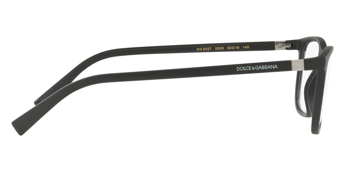 Eyeglasses (DG5027 2525 55) by DOLCE & GABBANA™. Color: Matte Black, Shape: Square, Material: Plastic, Frame Type: Full Rim, Frame Size: 55-18-140.