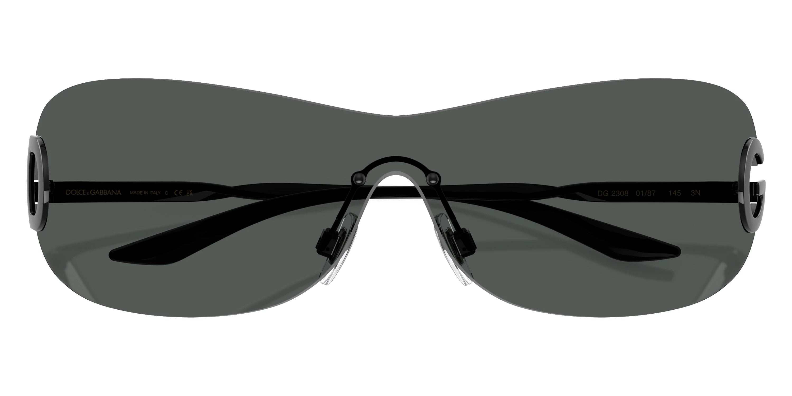 Black (01/87) Sunglasses with Dark Gray lenses (DG2308 01/87 141) by DOLCE & GABBANA™. Size: 141-0-125, Shape: Butterfly, Material: Metal.