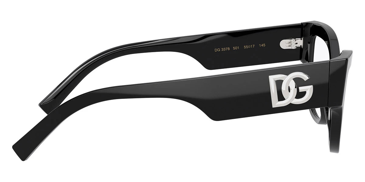 Black (501) Eyeglasses (DG3378 501 55) by DOLCE & GABBANA™. Size: 55-17-145, Shape: Cat-Eye, Material: Acetate.