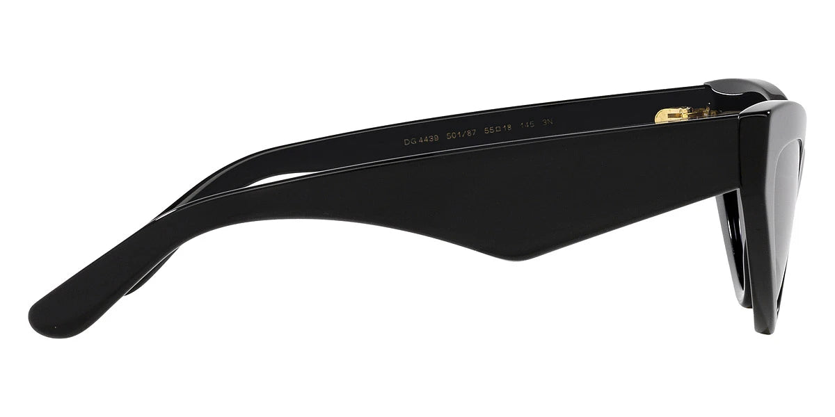 Black (501/87) Sunglasses with Dark Gray lenses (DG4439 501/87 55) by DOLCE & GABBANA™. Size: 55-18-145, Shape: Cat-Eye, Material: Acetate.