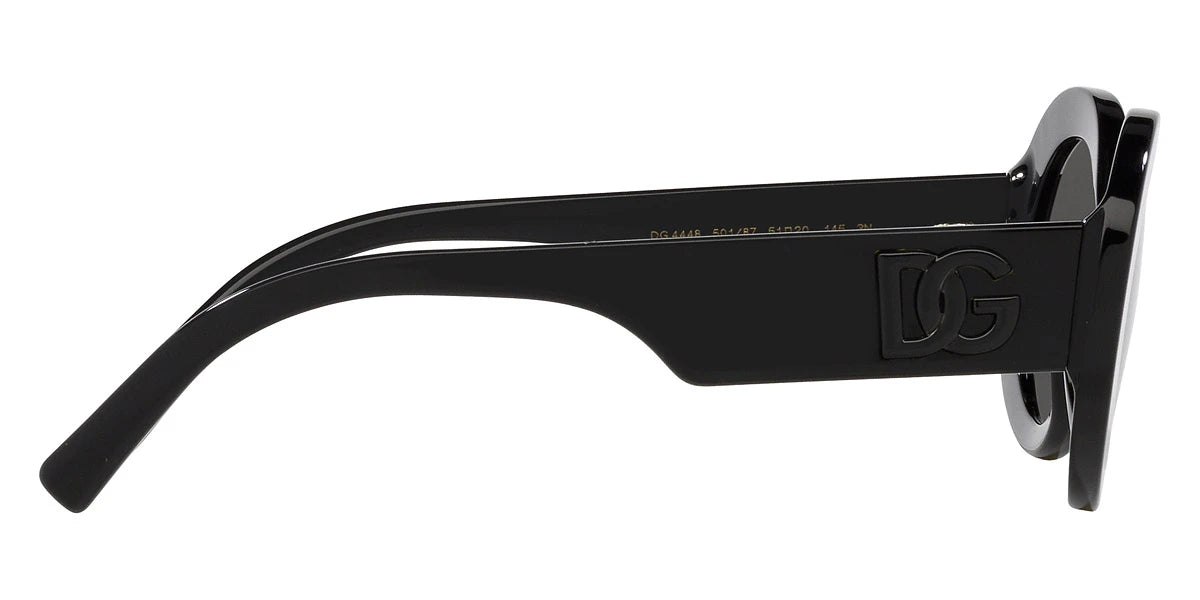 Top Leo on Black (316387) Sunglasses with Dark Gray lenses (DG4448 316387 51) by DOLCE & GABBANA™. Size: 51-20-145, Shape: Oval, Material: Acetate.