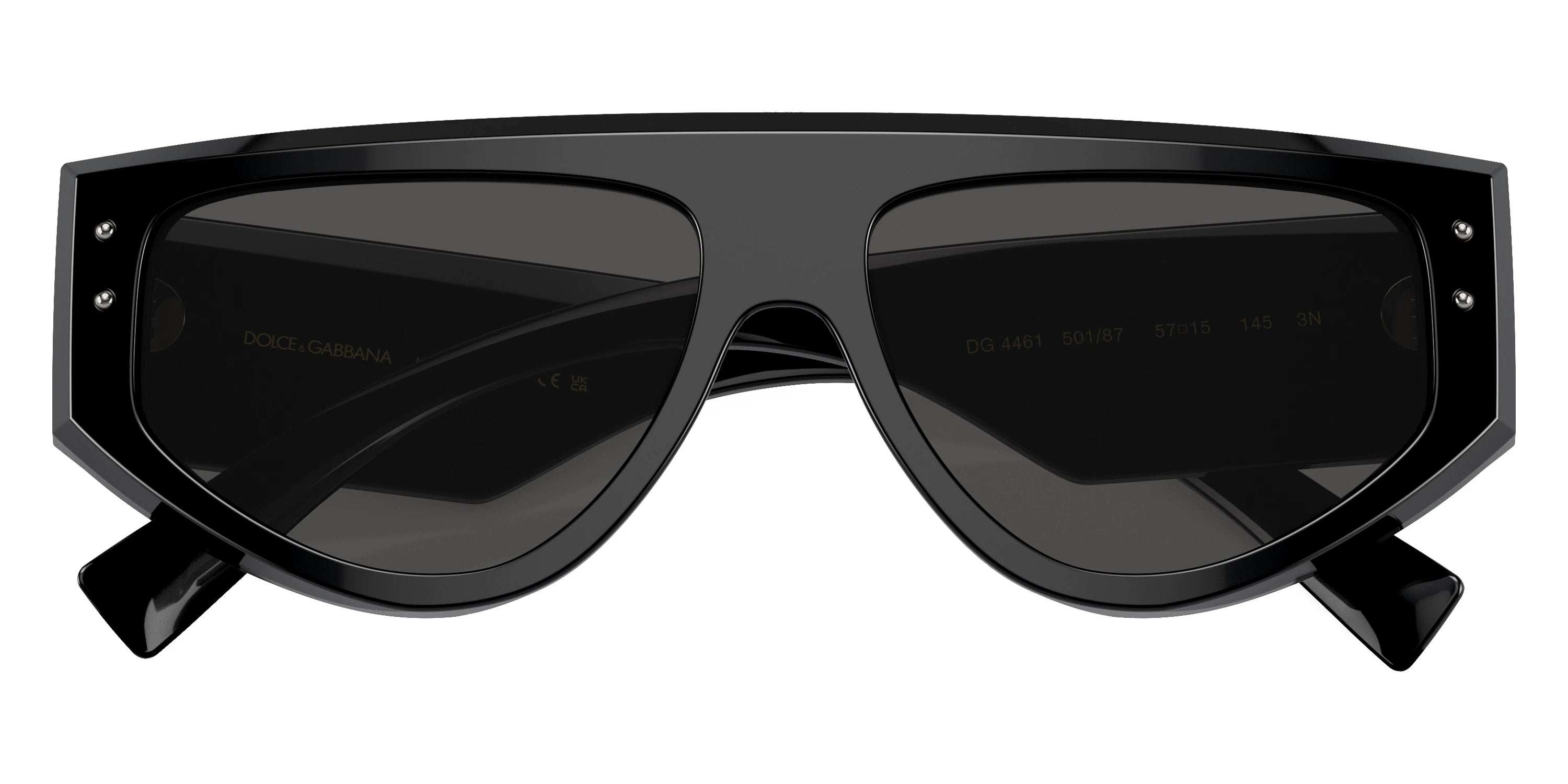 Black (501/87) Sunglasses with Dark Gray lenses (DG4461 501/87 57) by DOLCE & GABBANA™. Size: 57-15-145, Shape: Rectangle, Material: Acetate.