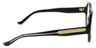 The third number — the temple length — is the length of the "stems" of the frame, measured from the frame hinge to the back tip of the temple. Temple lengths generally range from 120 mm to 150 mm.