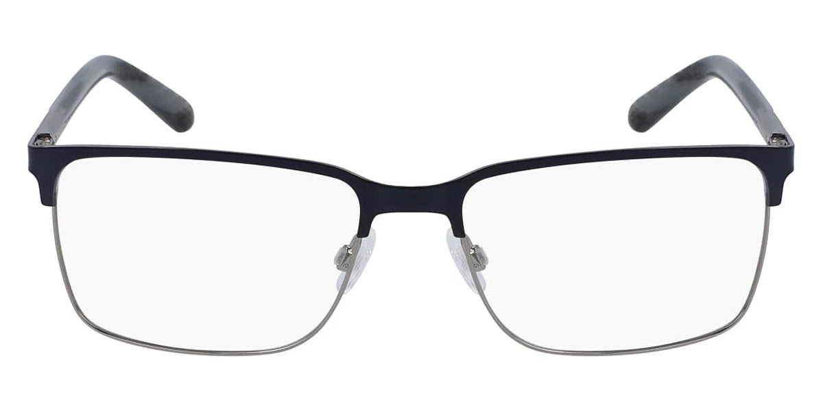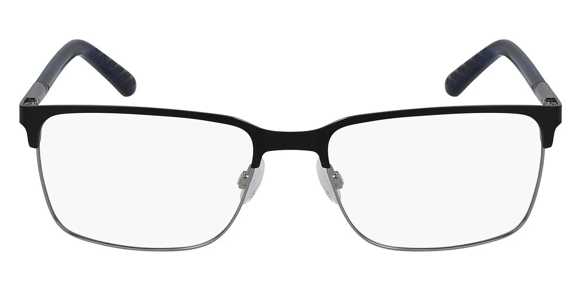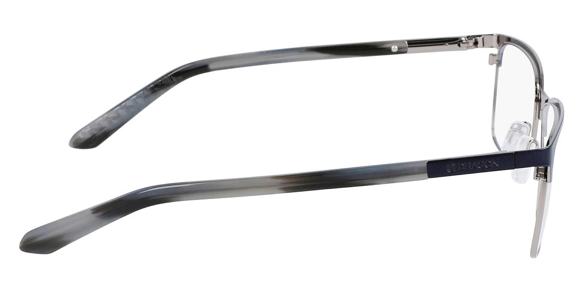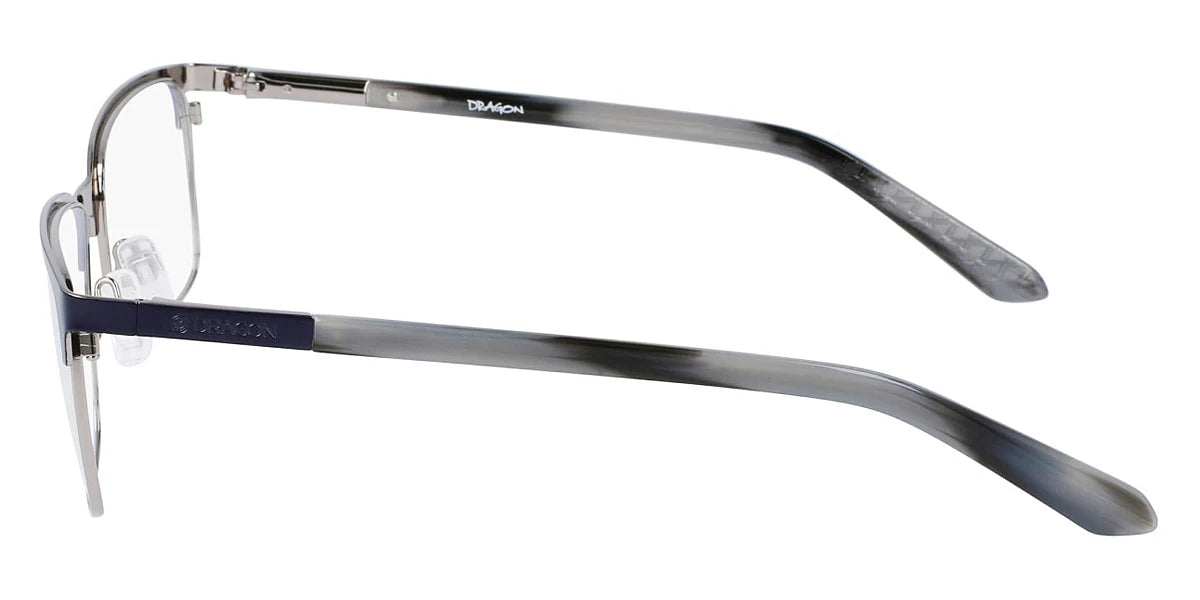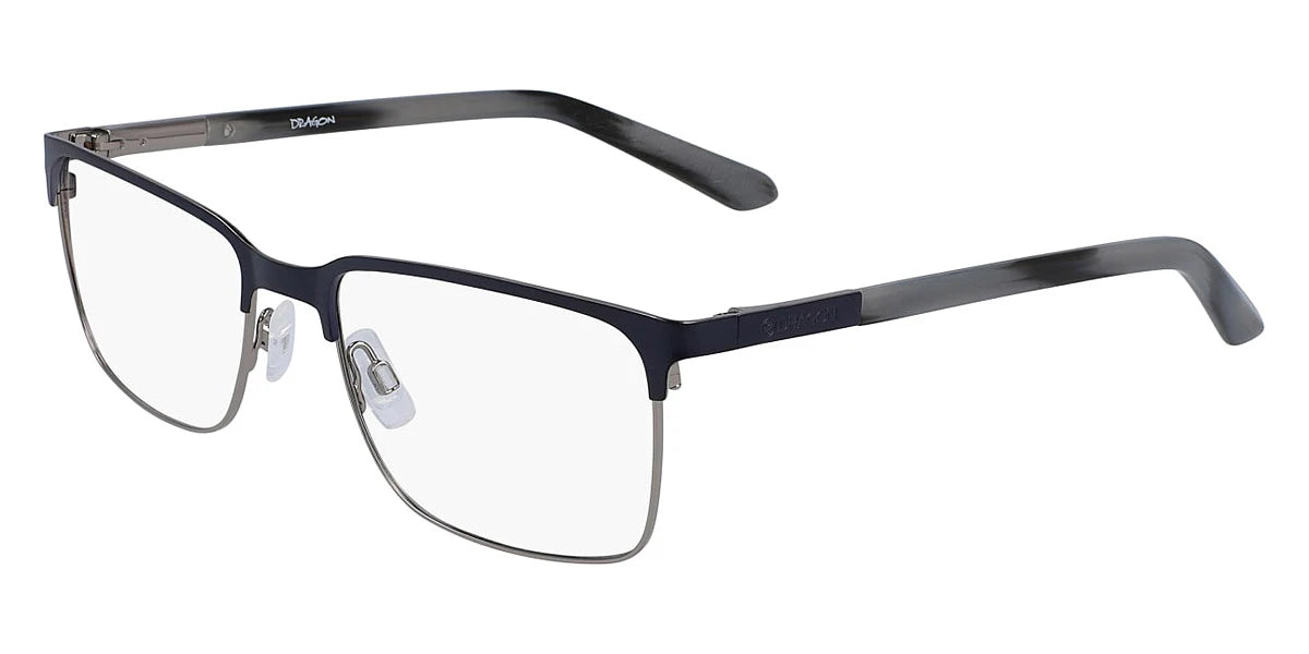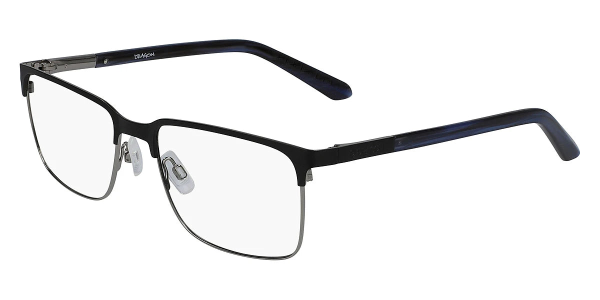 Matte Black/Navy Horn (002) Eyeglasses (DR2015 002 57) by Dragon™. Size: 57-19-150, Shape: Rectangle, Material: Metal.