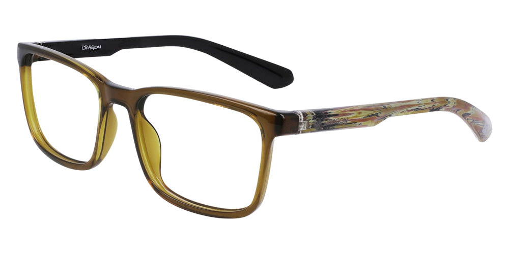 Shiny Olive Crystal Rob Resin (313) Eyeglasses (DR2037 313 56) by Dragon. Size: 56-18-140, Shape: Square, Material: Bio Injected.